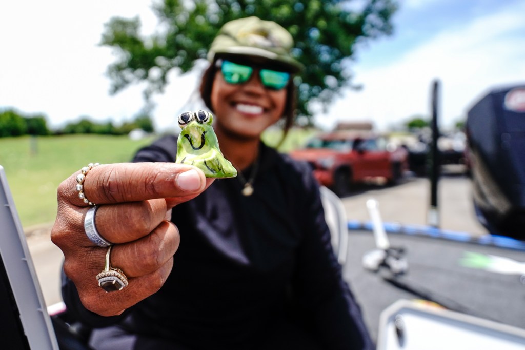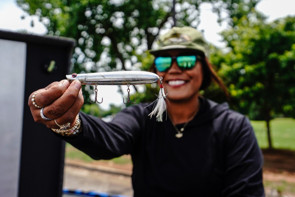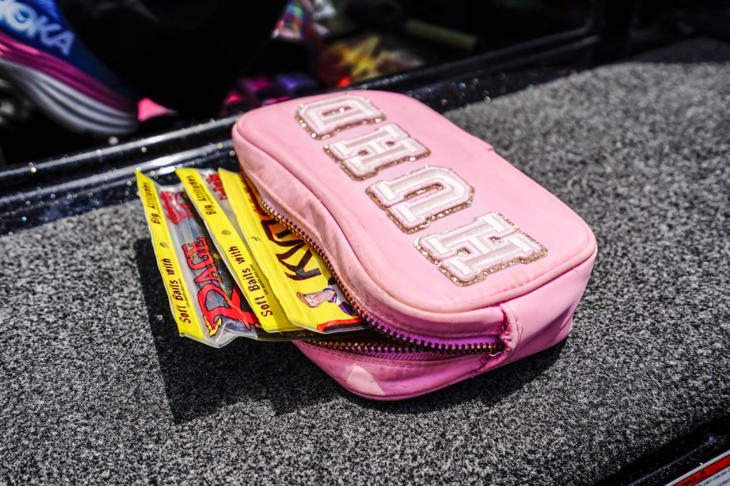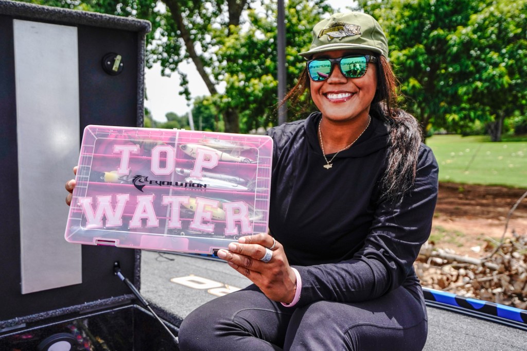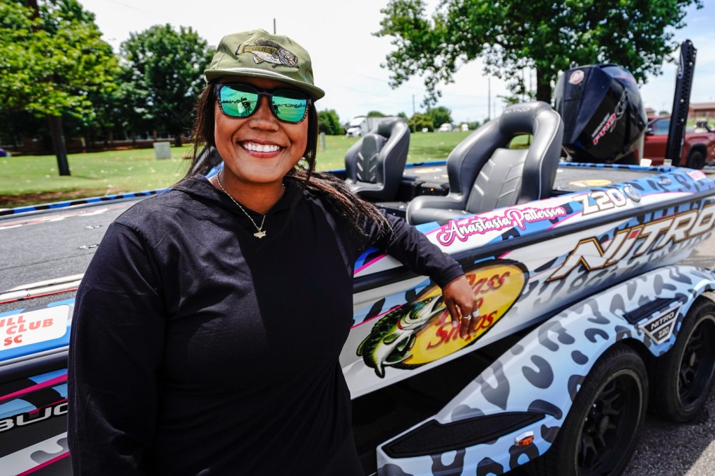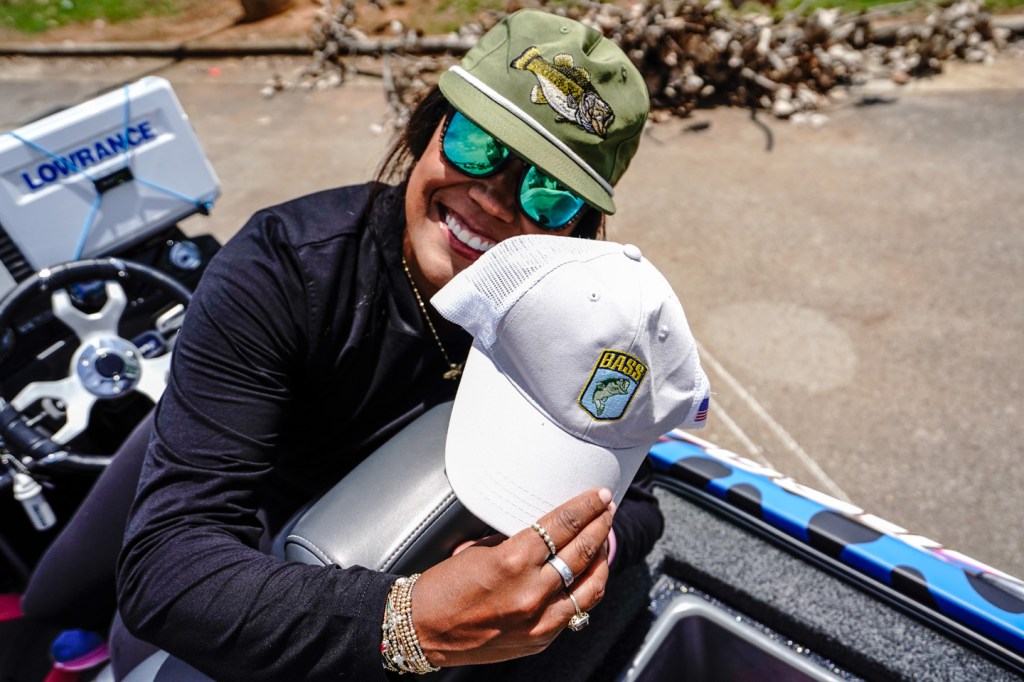The Bassmaster Hat is always in Anastasia’s boat, offering sun protection and style. It’s the must-have accessory for any fishing fashionista.