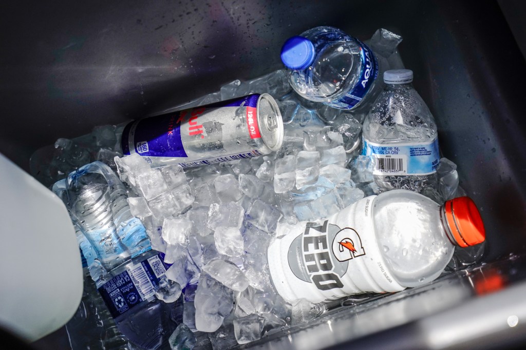 The Cooler of Drinks is stocked with water, Gatorade, and Red Bull. Hydration station – keeping the energy up and the thirst down.