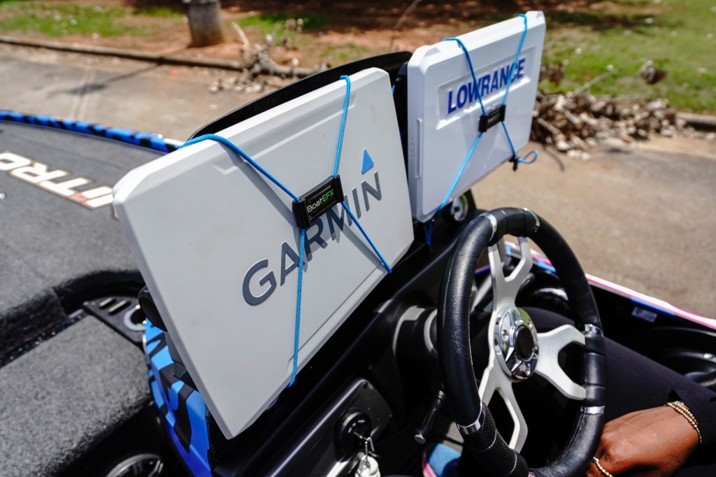 Bass Boat Technologies Mounts make it easy to remove and adjust her gadgets. Flexibility and convenience all in one.