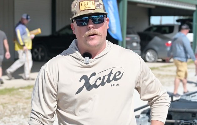 Previous champions discuss a strategy at registration for Possum Kingdom Lake.