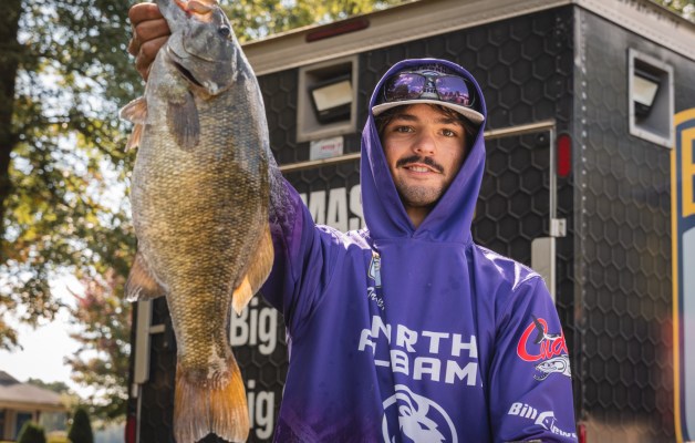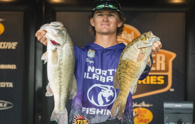 With 19 pounds, 14 ounces, Tripp Berlinsky of the University of North Alabama holds the Day 1 lead at the 2025 Bassmaster College Classic Bracket presented by Lew’s.