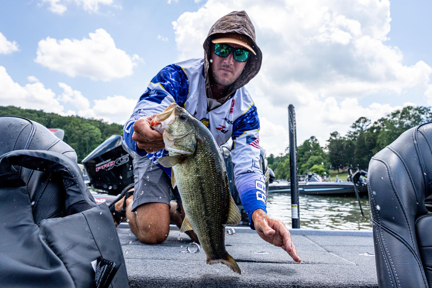 Plenty of teams have said they have been bouncing back and forth from shallow to deep water, including Andrew Blanton and Garrett Smith from Lander University, who have used a buzzbait around bank cover and a jig in all depths. Of course, forward-facing sonar has played a factor for both quality smallmouth and largemouth.