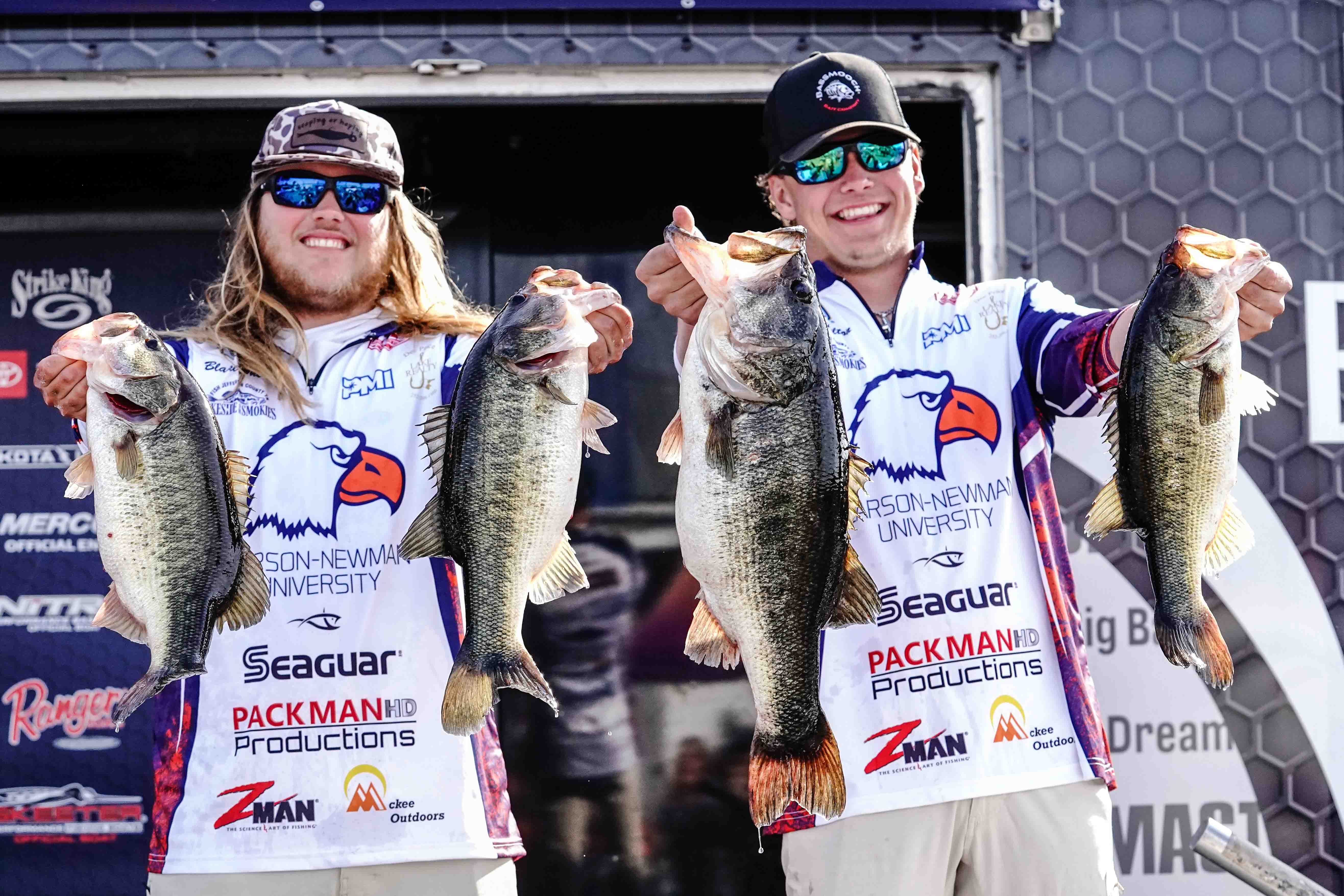 CLEWISTON, Fla. — A late-morning kicker buoyed the bag for Carson-Newman University’s Zachary Helton and Blake Wheat, whose five-bass limit of 24 pounds, 5 ounces topped the Day 1 leaderboard for the Strike King Bassmaster College Series at Lake Okeechobee presented by Bass Pro Shops.