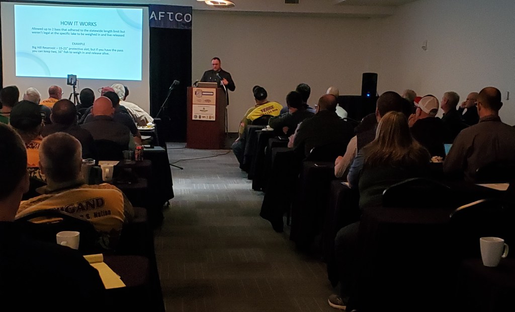 Presentations on tournament registration and permitting systems were made by biologists Tom Goniea from Michigan Department of Natural Resources (DNR) , Bryan Soward with Kansas Wildlife and Parks, Scott Bisping with Florida Fish and Wildlife Conservation Commission (FWC) and Geoff Smith from the Pennsylvania Fish and Boat Commission. Each emphasized how valuable the data collected by their state systems were to managing tournaments, access, and bass fisheries. During the discussion it was noted that several states do not have any registration system and do not have accurate information on the number of bass tournaments or tournament anglers in their states. Registration and permitting systems allow agencies to help manage both the biological and social impacts of a growing number of tournaments.