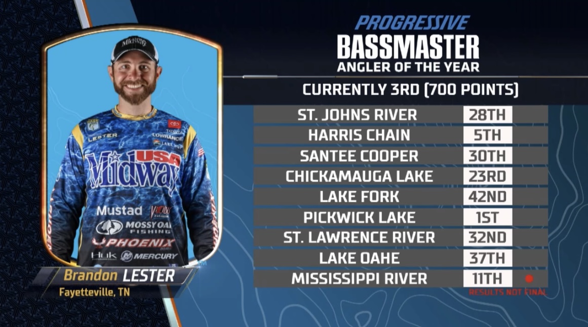 Brandon Lester has made a huge push the last couple of events to chase down Brandon Palaniuk for the Angler of the Year title.