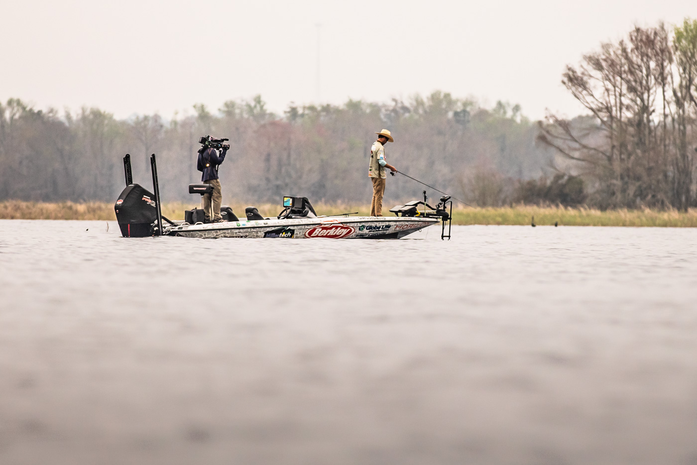 Everything about his demeanor has been entirely different since early this morning. He confidently wrestled big ones into the boat the last two days on Bassmaster LIVE. But this morning, he hasn’t even been optimistic when he did hookup times, as if he knew he would lose a big one as soon as it bit. When he hooks up, his knees are bent, his back is taut and he’s been as tense as a guy can get. But… the cowboy finally got a big one in the boat a few minutes ago, for a 5- pound cull. Good for Cifuentes. He loosened up for all of 5 minutes and then lost another. What a roller coaster of emotion.
