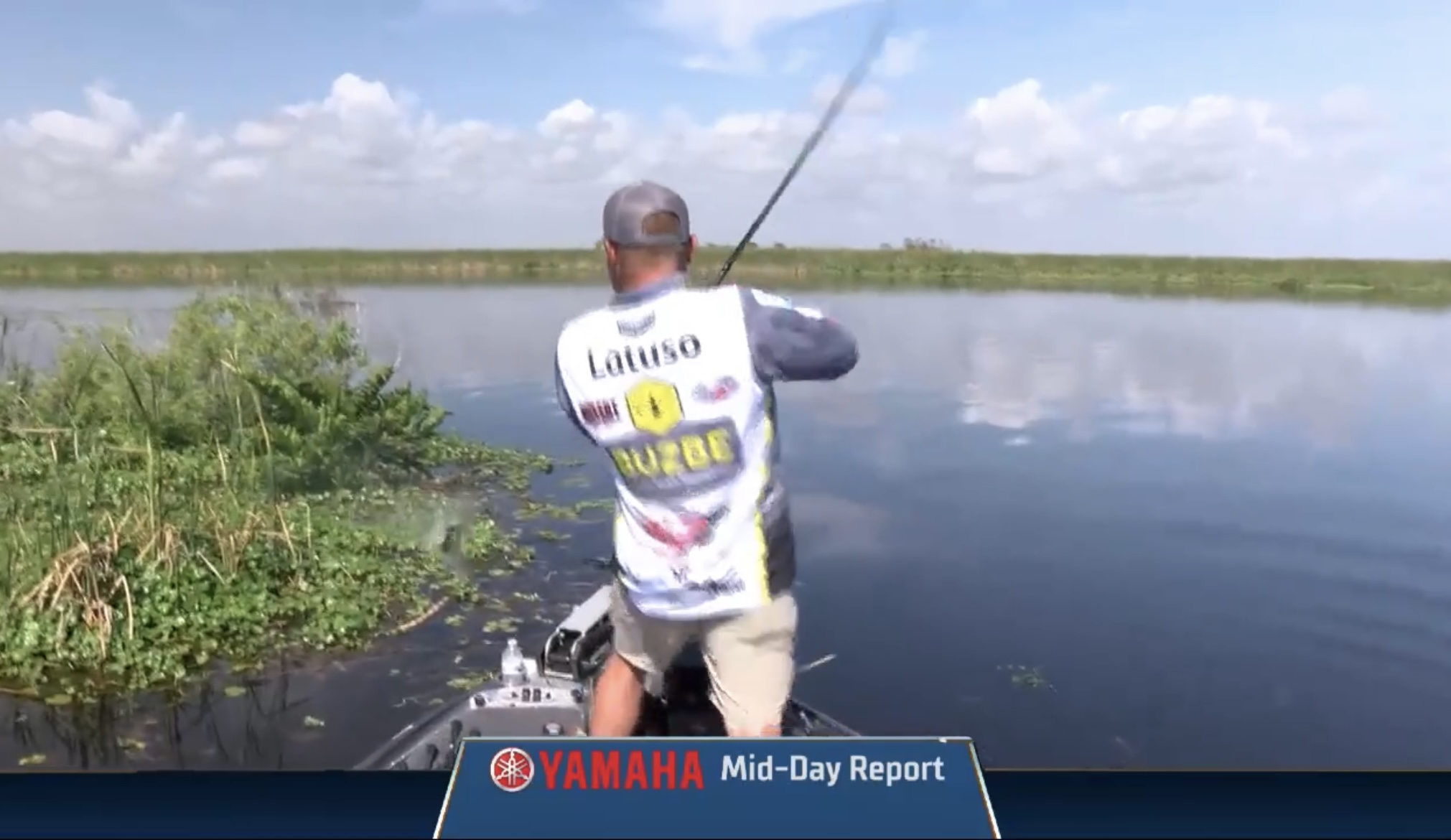 Punching has played little to no role in this one so far. But Latuso is showing what the big weight can do during post-frontal conditions, punching into thick mats of vegetation where ornery bass await below.