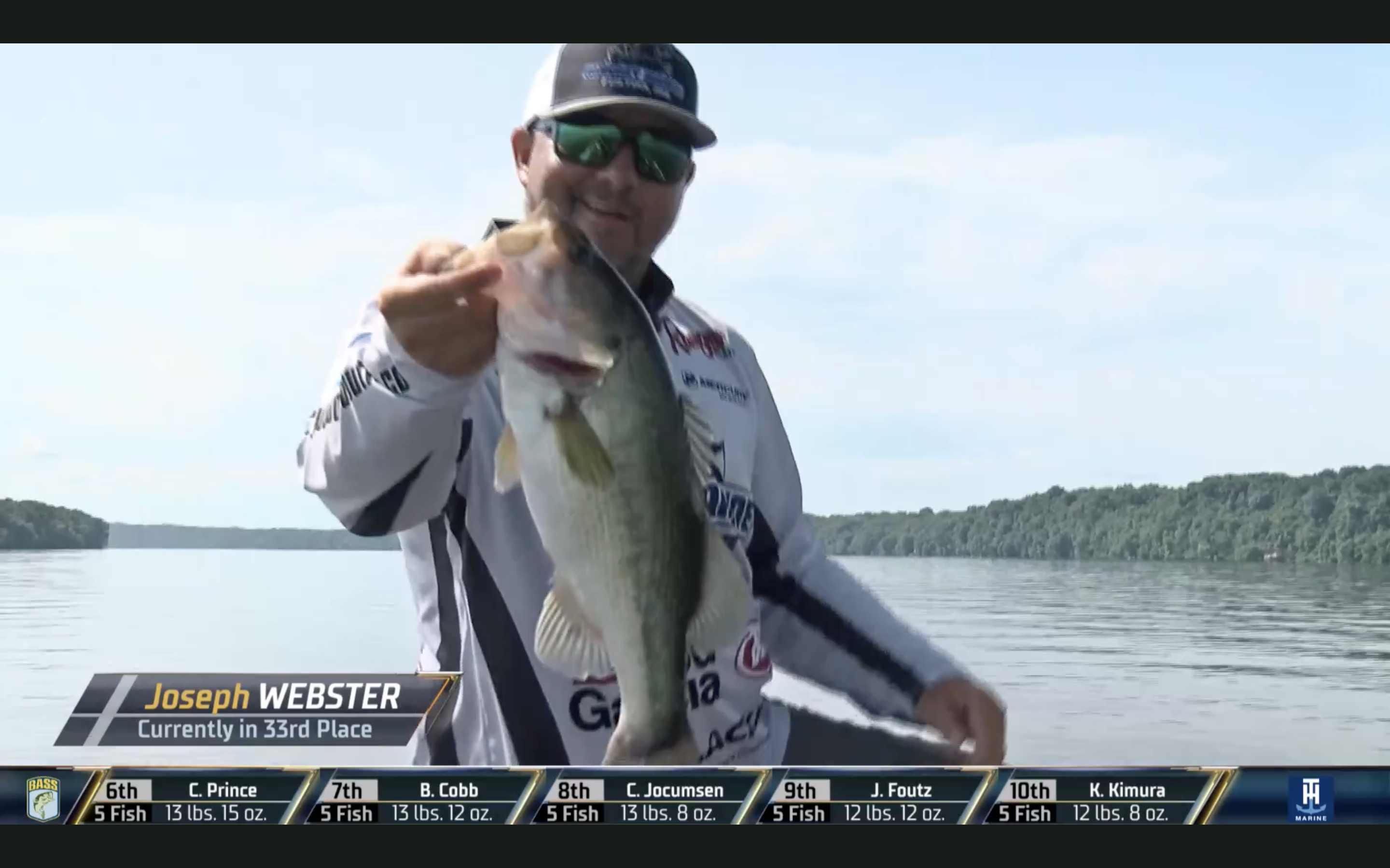 Bassmaster Elite Series Rookie Joseph Webster is sitting in a deceiving 21st place right now according to BassTrakk. Webster has 11- pounds, 2- ounces currently, but that’s for only 3 fish. And based on the last one we saw him catch on LIVE, it looks like his estimated weights for BassTrakk may be a little conservative. That last fish looked a little heavier that Webster’s 3- pound, 8- ounce guesstimate.