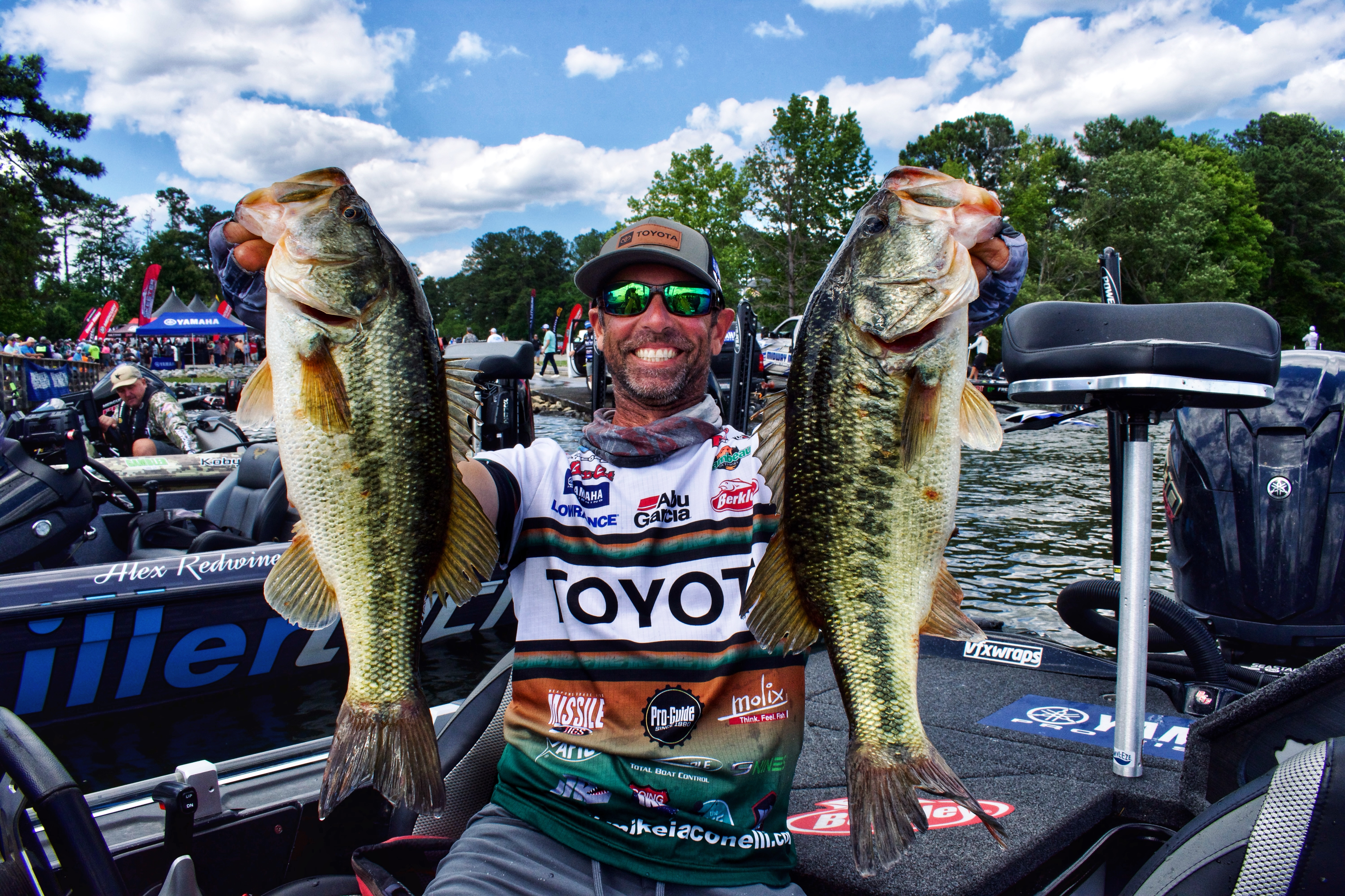 Team Toyota pro Mike Iaconelli has fished all three Elite Series tournaments held on South Carolina’s Lake Murray, and after day twos’ weigh-in concluded, he’s still yet to miss a paycheck on this fishery. The veteran Iaconelli tied for second place here in 2011, 11th place in 2023, and backed those performances up with another strong tournament on Murray this week, heading into semifinal Sunday in 29th place.