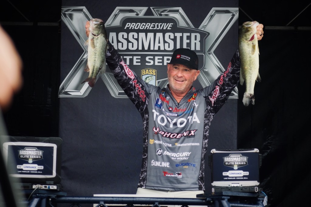 The 30-year tournament veteran did just that on Day 2, leveraging a stellar bite around marina docks coupled with a pattern around flooded bushes to mount his comeback. Swindle is one of the most accomplished “junk fishermen” in bass fishing and said this tournament fit right into his wheelhouse. He fished what was in front of him while trying to adapt with the volatile weather conditions anglers were dealt at Tenkiller.