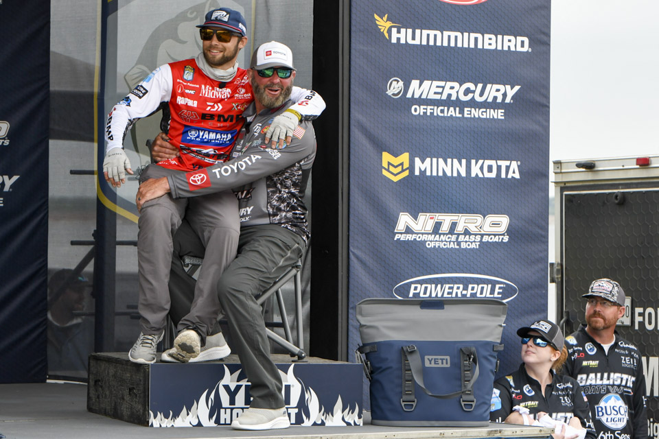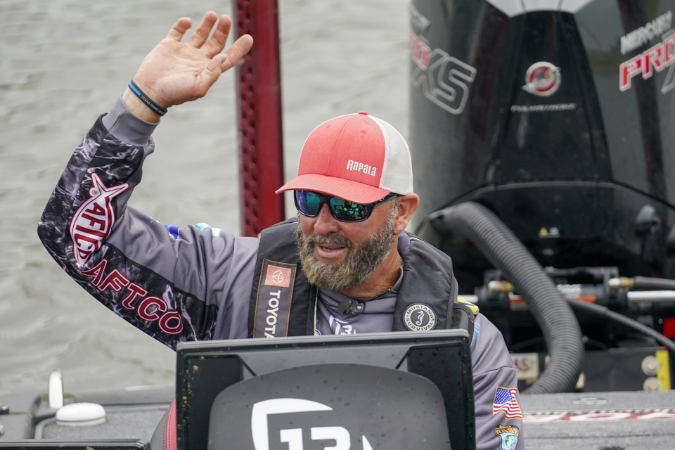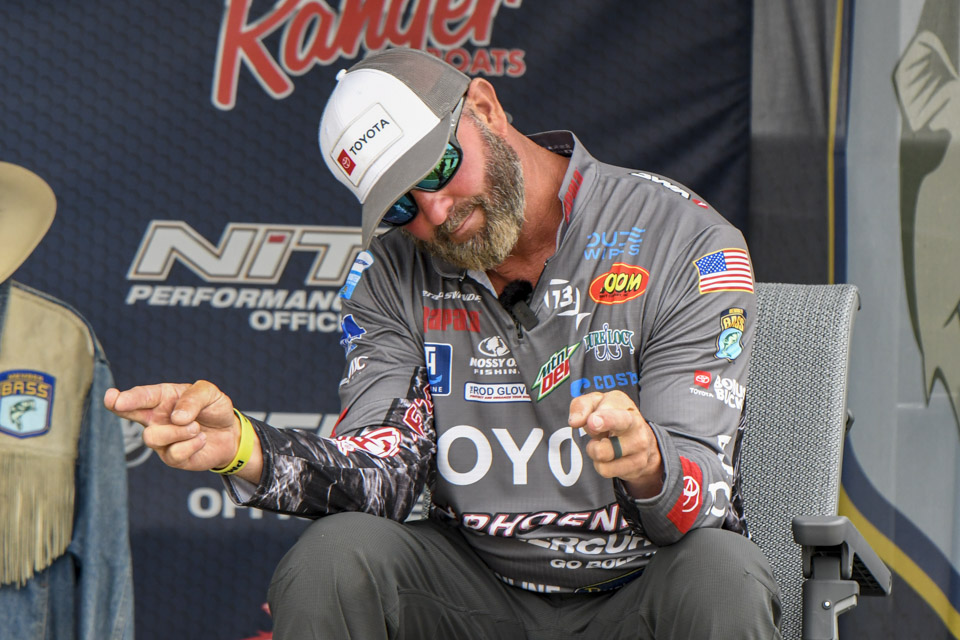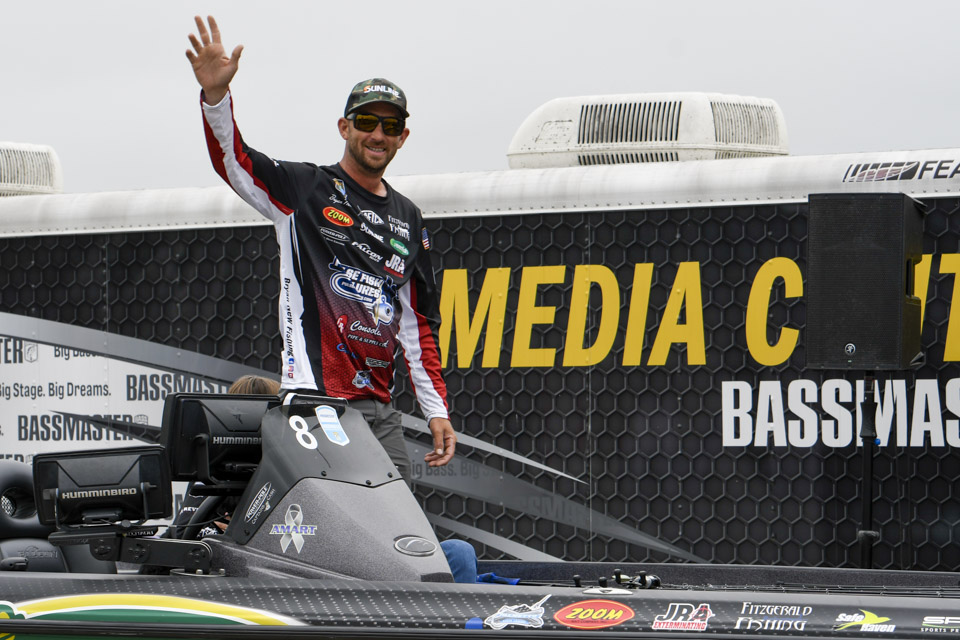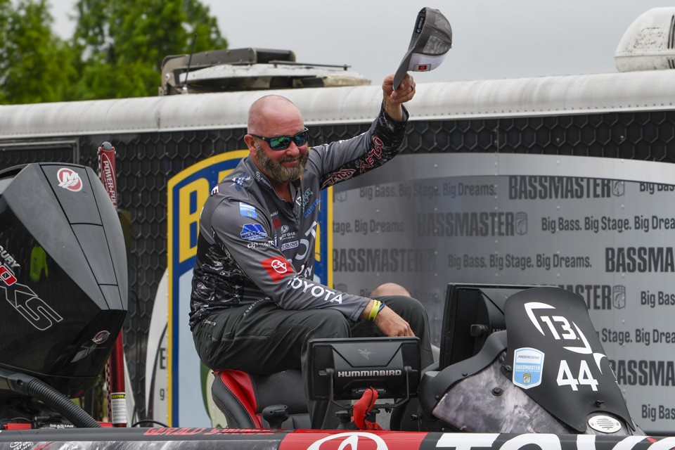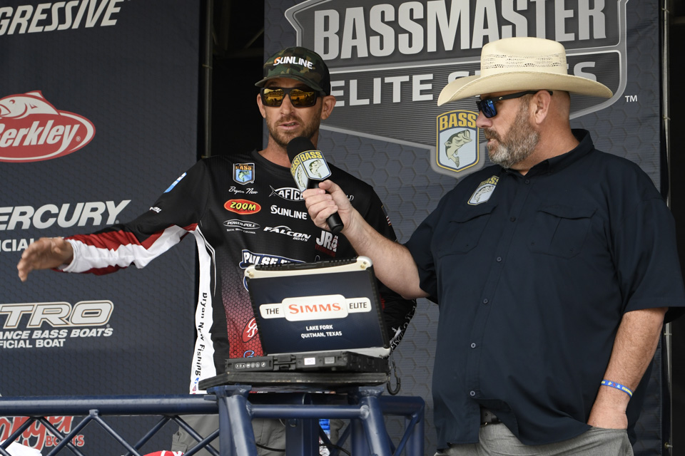 The top Elites cross the stage on the final day of the 2022 Simms Bassmaster Elite at Lake Fork!