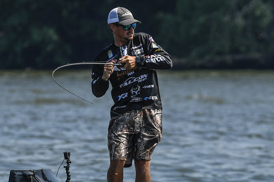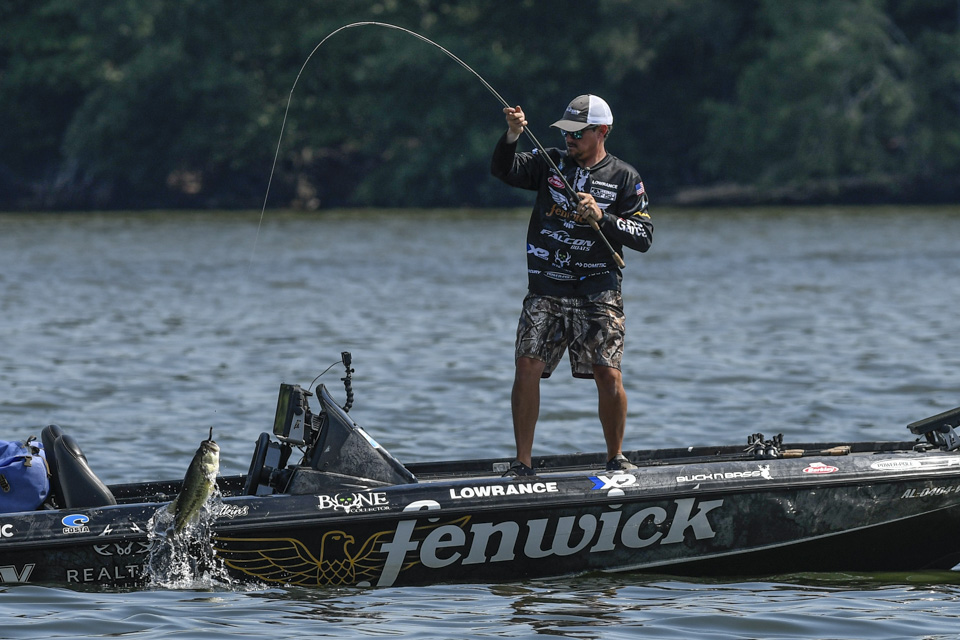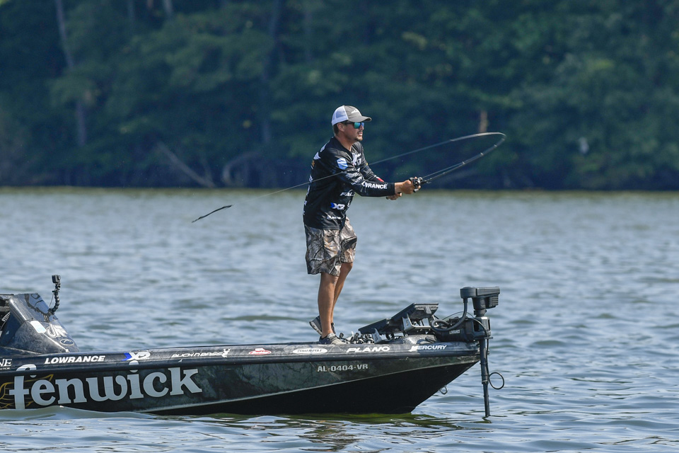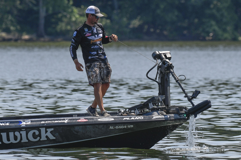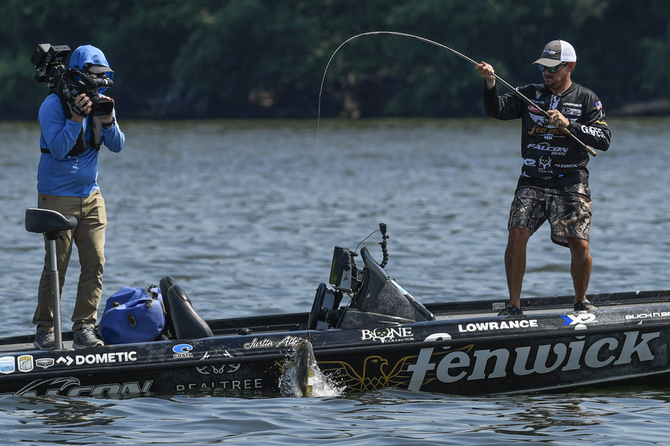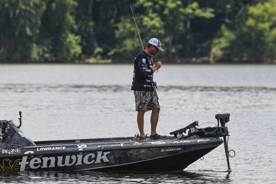 The Kentucky pro settled into an area and began rotating through a variety of baits including a crankbait and a magnum spoon.