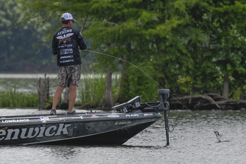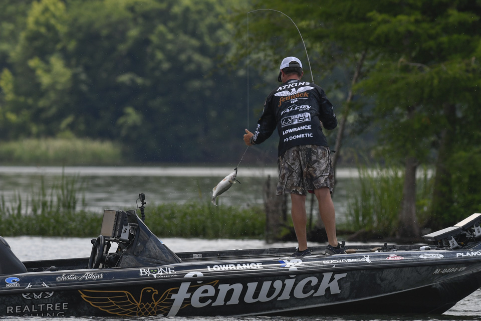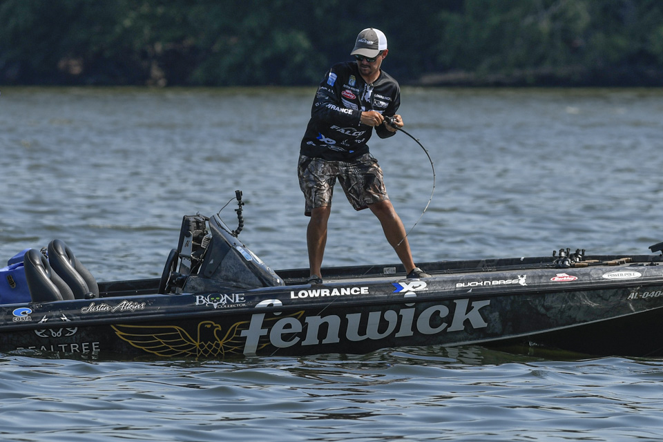 Justin Atkins began the 2022 Whataburger Bassmaster Elite Series at Pickwick Lake struggling in the Progressive Bassmaster Angler of the Year race, and he climbed the leaderboard to make Championship Sunday with a three-day total of 53-4.