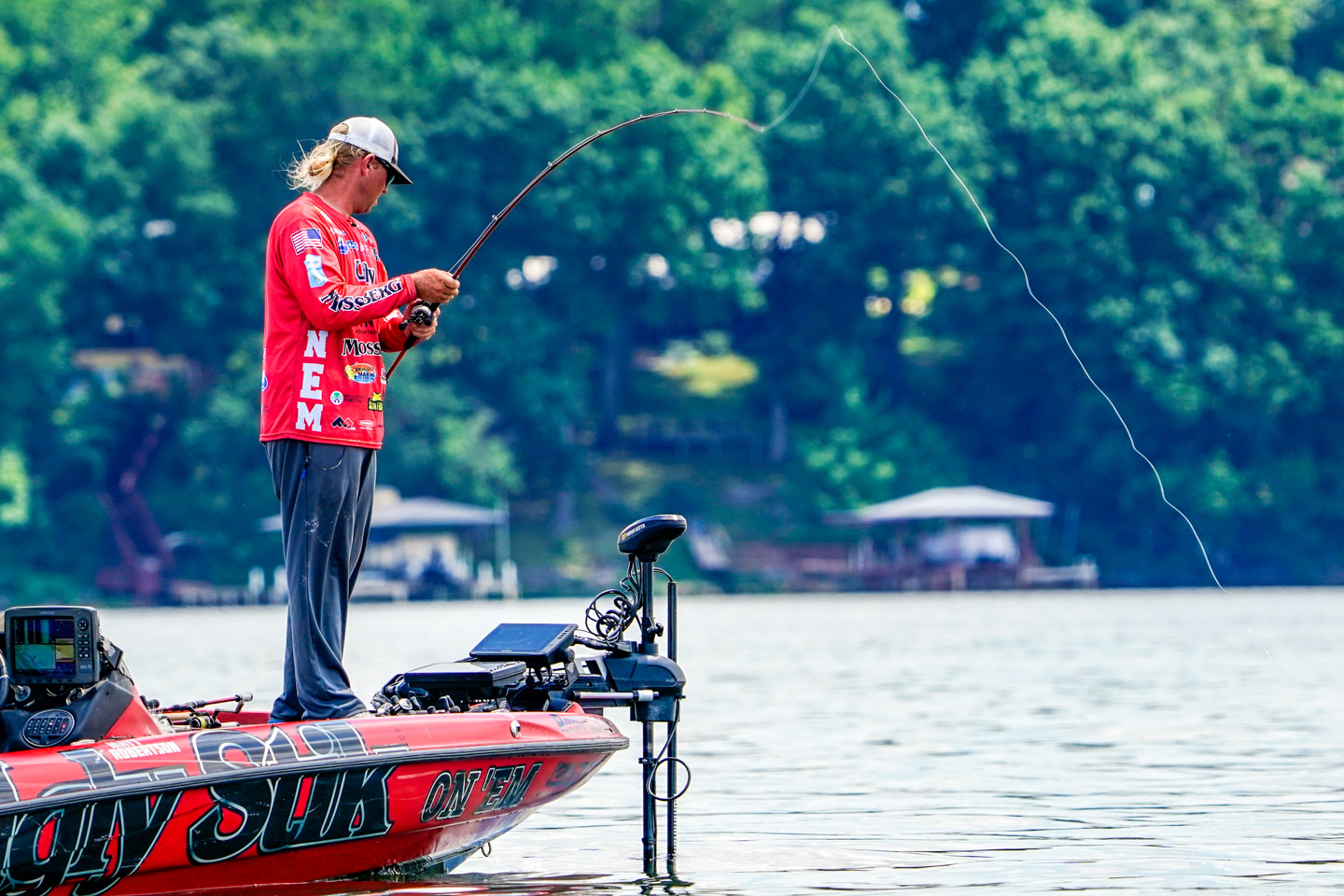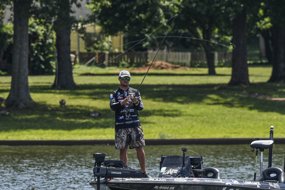 The Alabama pro, who is intimately familiar with Pickwick Lake, was fishing a stump-dotted ridge. He was making precision casts, using his electronics to identify targets.