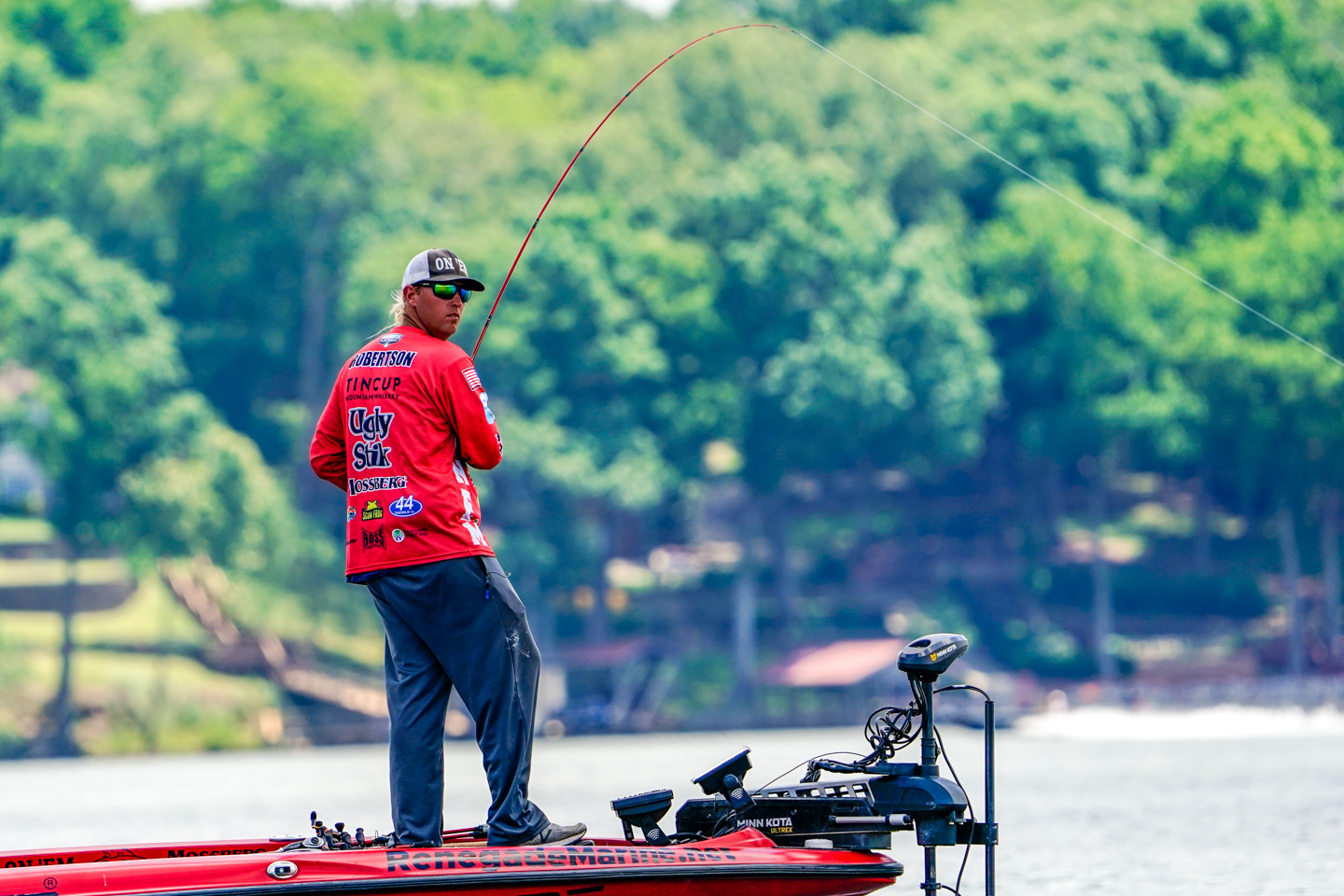 A few casts into throwing the magnum spoon, Robertson hooks up with a nice fish.