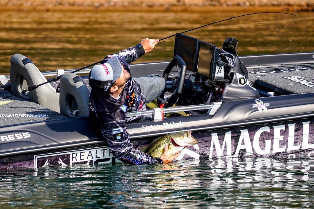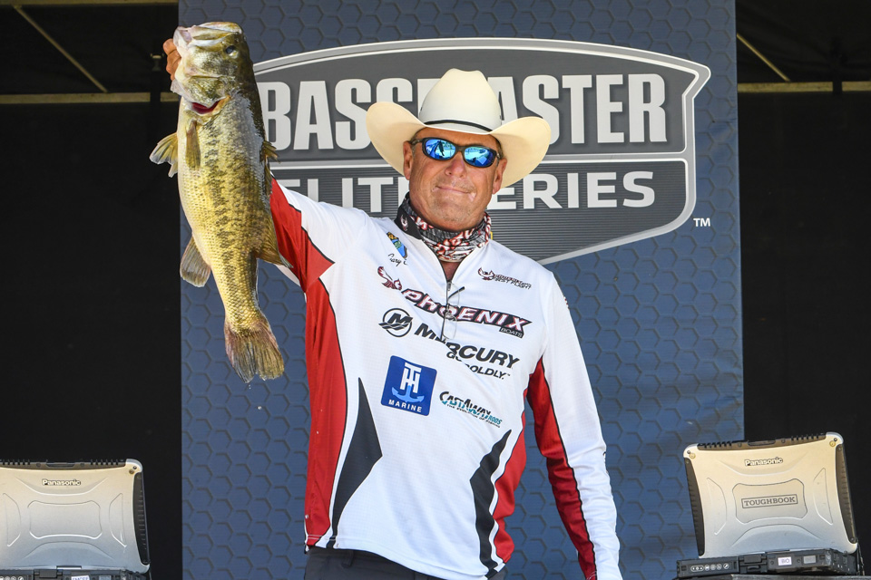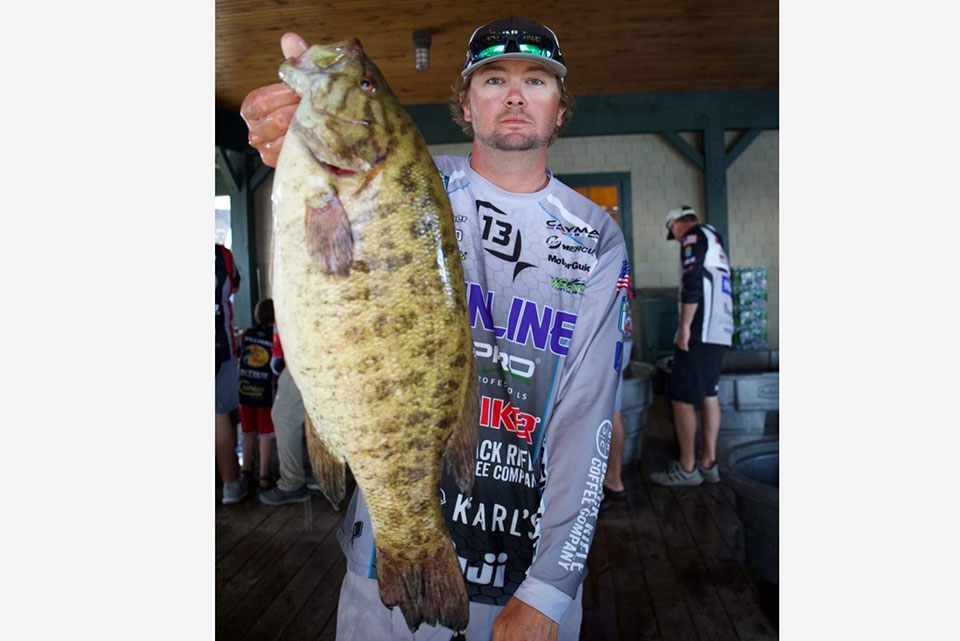 Guaranteed Rate Bassmaster Elite at Lake Oahe, Aug. 18-21. The huge smallmouth fishery wasn’t yielding the 20-plus pound bags reported a year earlier in pre-scouting, but there were big bass. Brandon Cobb was back at it, landing this 5-12 for daily and overall big bass bonuses. Cobb was eighth with 18-13, but he fell to 32nd after a Day 3 limit (5-7) less than his big ’un.