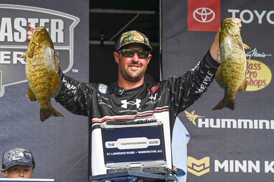 Cory Johnston, who broke through with his first Elite win on the St. Johns River in April, made the long run from Waddington to his spots deep in Lake Ontario. It paid off with 25-0, good for fourth. With a best of 6-2, Cory’s five fish averaged almost a pound better than the day’s 4-1 average. Entering the event seventh in AOY, Cory moved up to fourth, just 19 back of the new leader.
