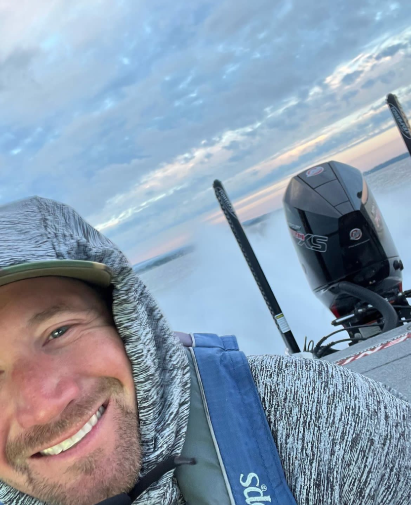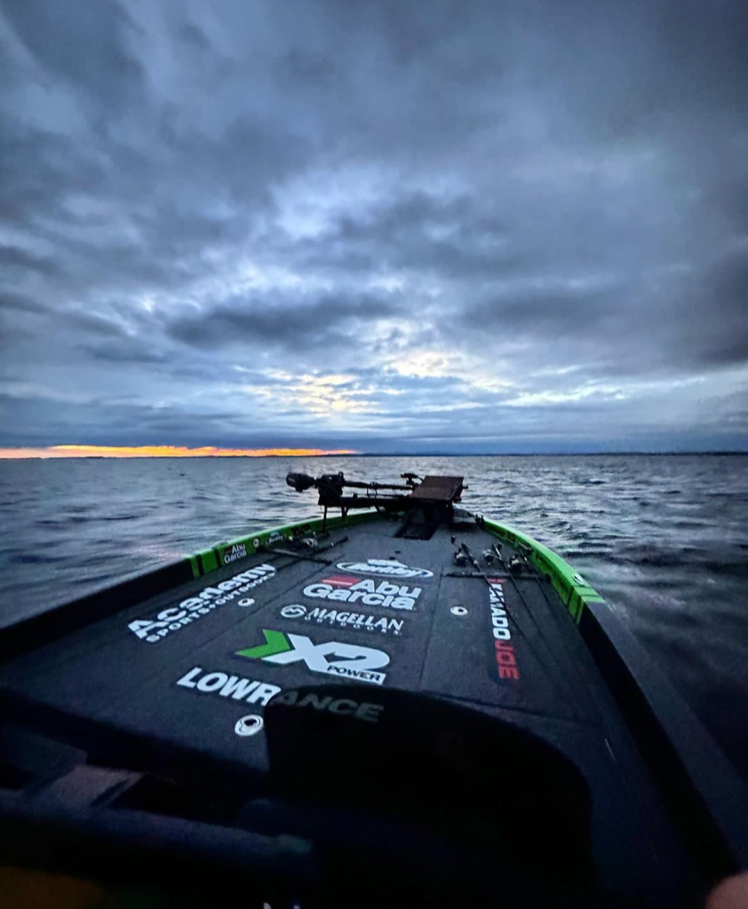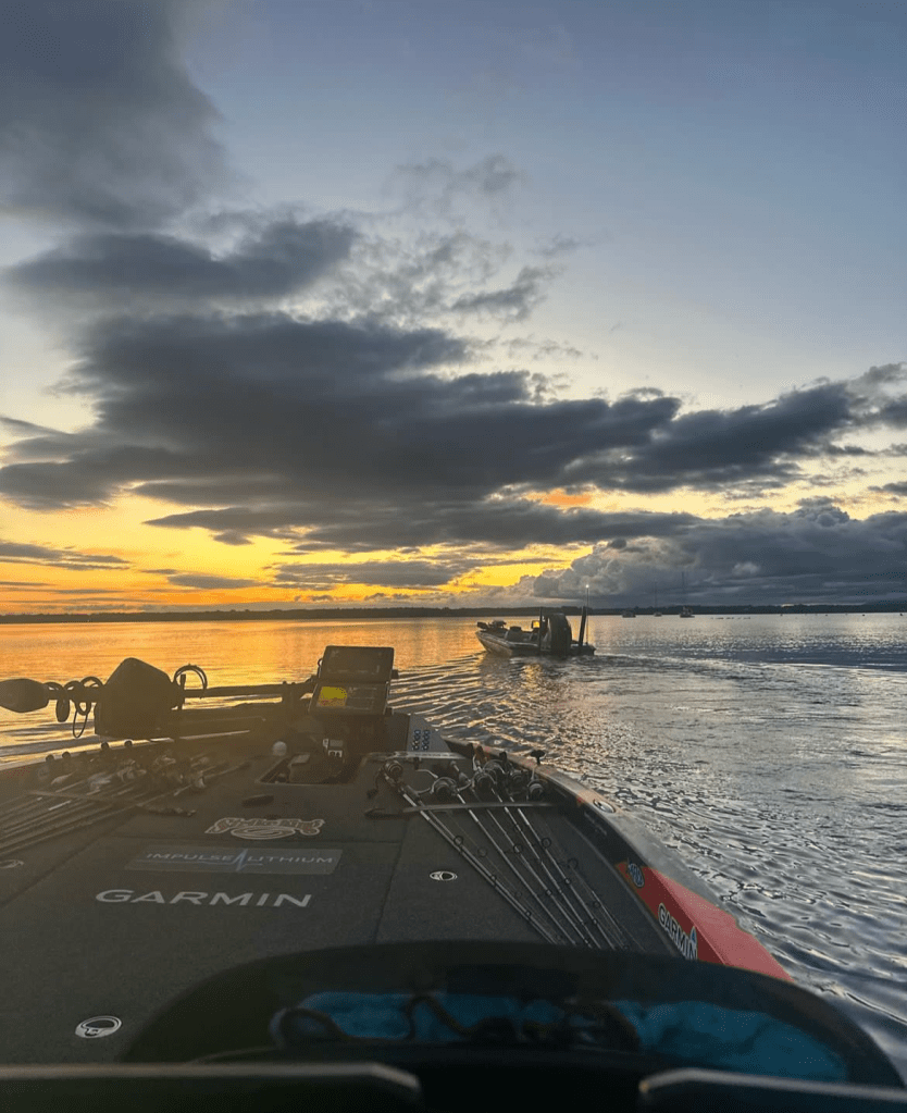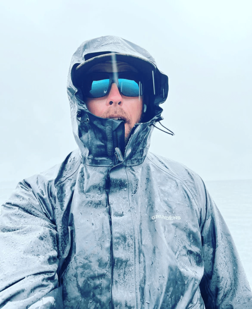 Judging by Luke Palmer’s attire, apparently, the morning boat ride was a little brisk. Air temps forecasted to be in the 60s and 70s throughout most of this event.