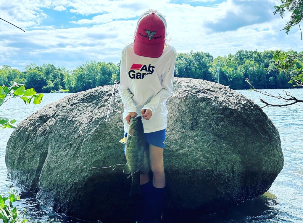 Ike’s son, Vegas, with a nice smallmouth from shore.
