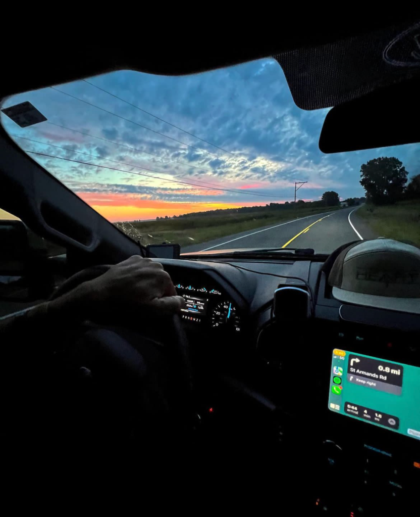 Frank Talley idles out towards a stunning sunrise.