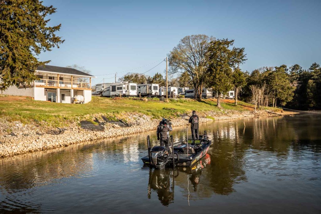 The pattern today for Christie was pretty simple, fish shallow, throw a chatterbait on the bank, and throw a jig on wood.