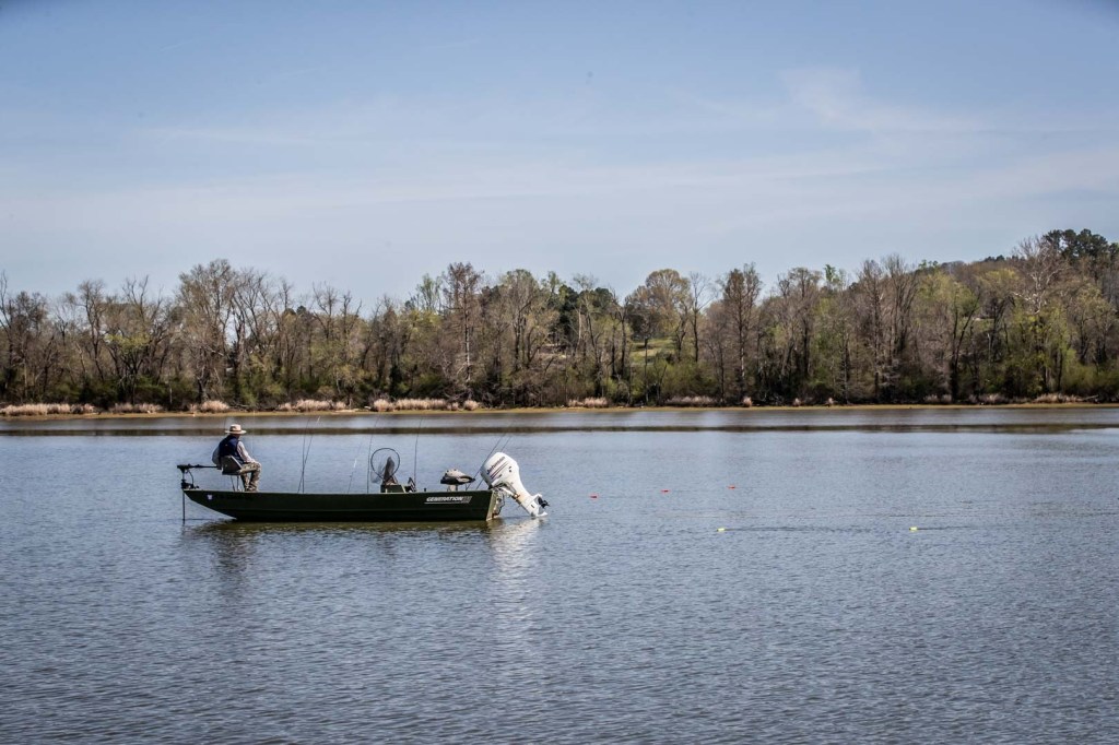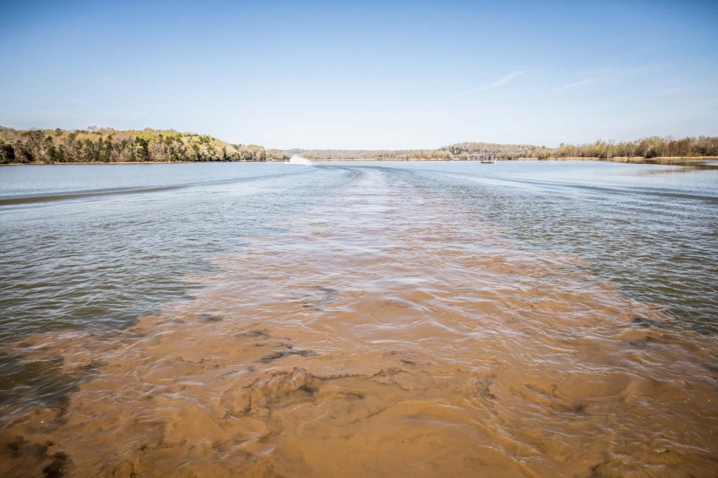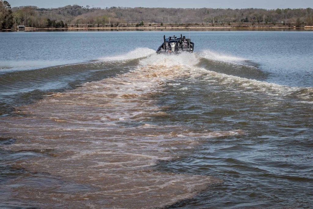 As the day warmed, Christie went shallow. He knew that the dirty water would warm quick, and the big fish would start getting even shallower. Following Christie was difficult. At times he was so shallow that if he got off plane, he would bottom out. At times he was in less than one foot of water. Every time Christie would go to his next stop, there would be a mid trial for hundreds of yards.