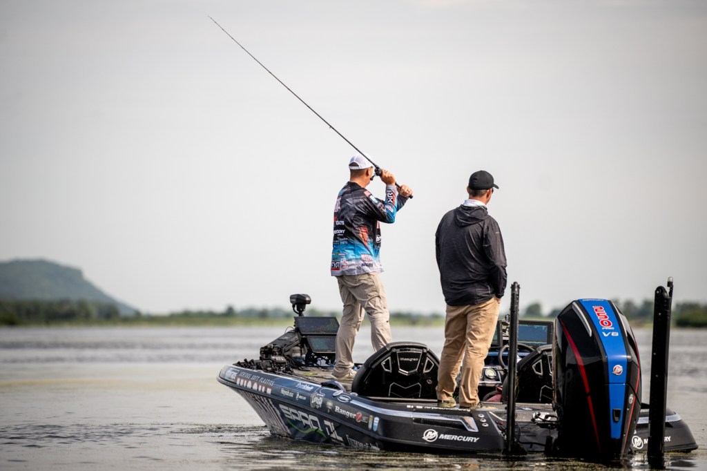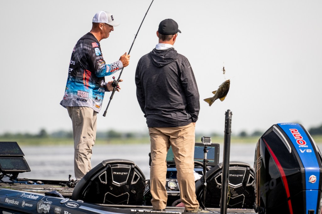 Head out on the water with Bryan Schmitt and JT Thompkins on Day 2 of the 2025 Pro-Guide Batteries Bassmaster Elite at Mississippi River.