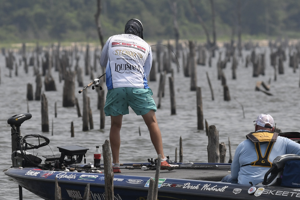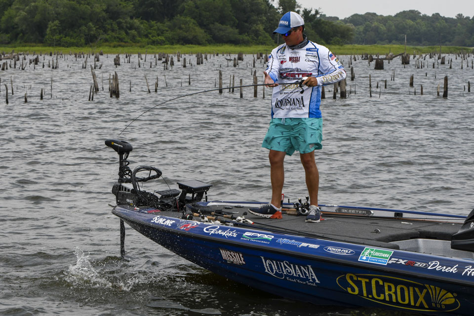 Head out with Derek Hudnall as he battles a tough afternoon on Day 3 of the 2022 Simms Bassmaster Elite at Lake Fork!