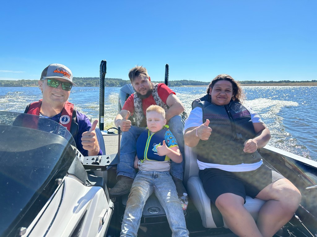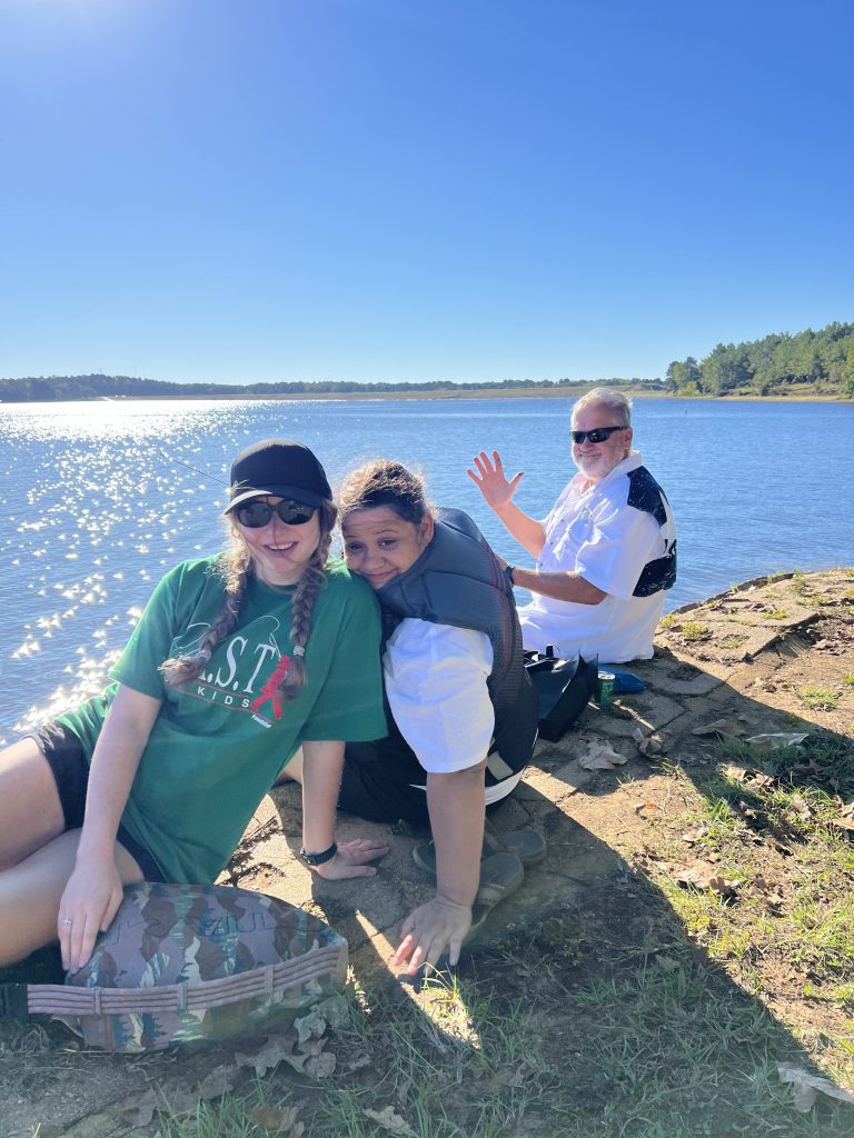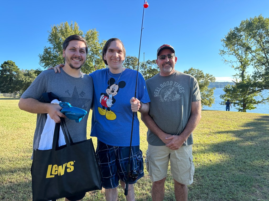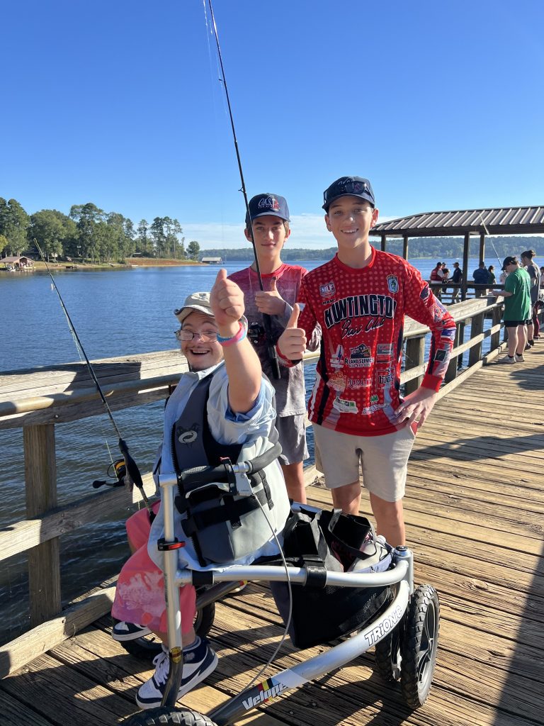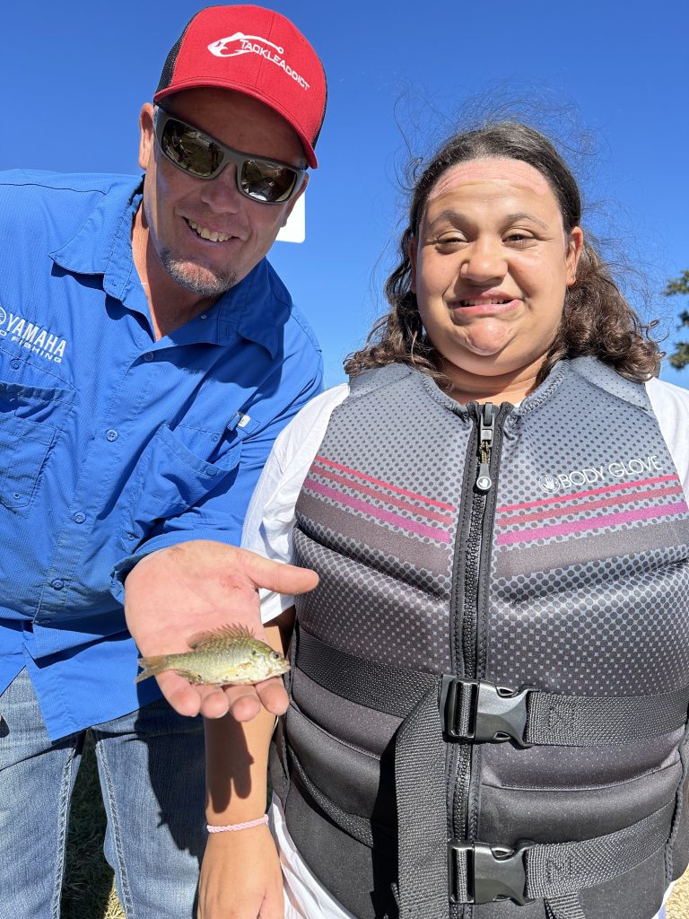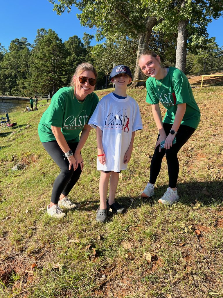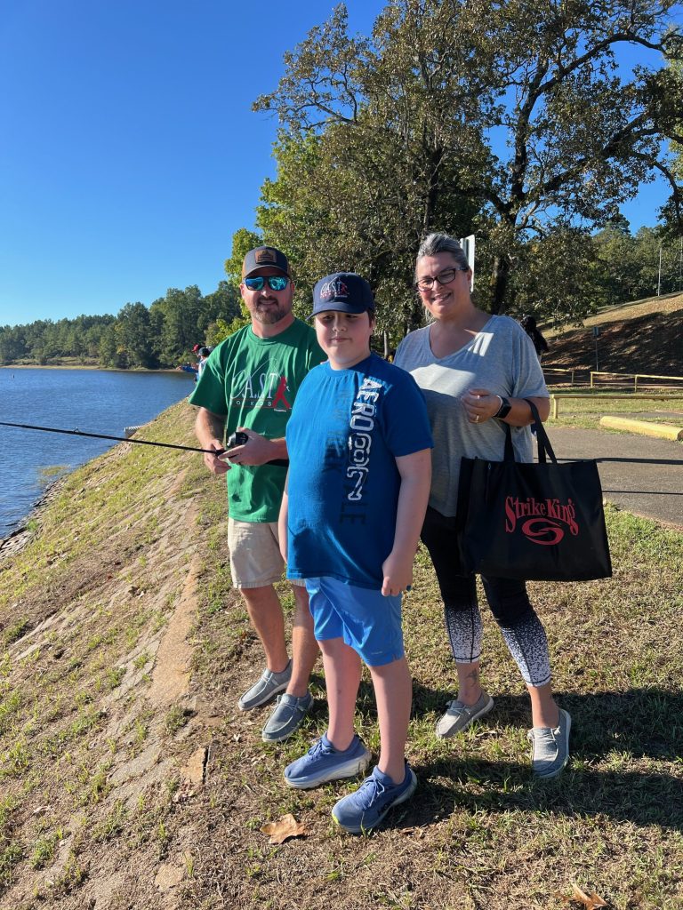 On Saturday, Keith and Jennifer Combs hosted a shoreline CAST For Kids fishing event at Lake Nacogdoches. 30 special children spent time fishing and taking boat rides with their volunteer fishing coaches. Every child was celebrated with an award plaque and medal, and they all took home a rod, reel, tackle box, t-shirt, hat, and swag bags full of products from Strike King, Lews, Seaguar, and Tackle Addict. Loving Toyota treated all of the children, their families, and all volunteers to a BBQ lunch.