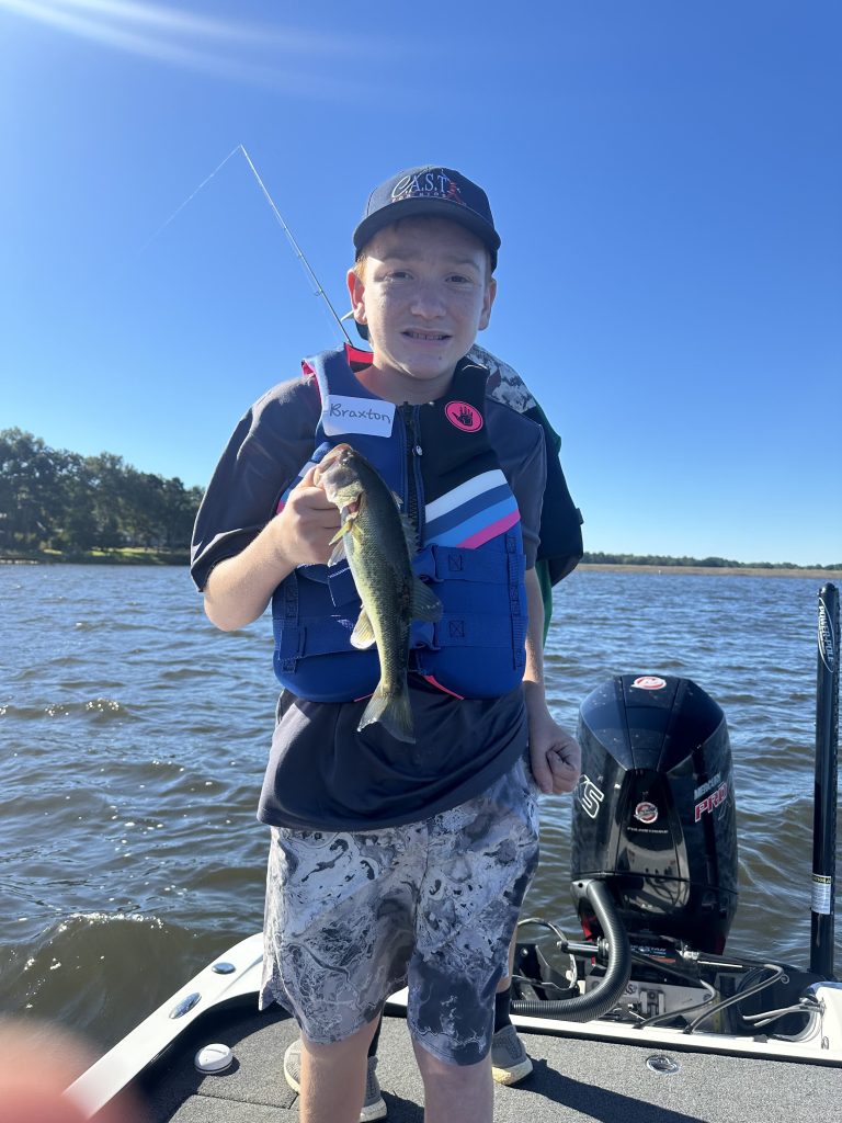 Braxton with a bass catch from the boat.