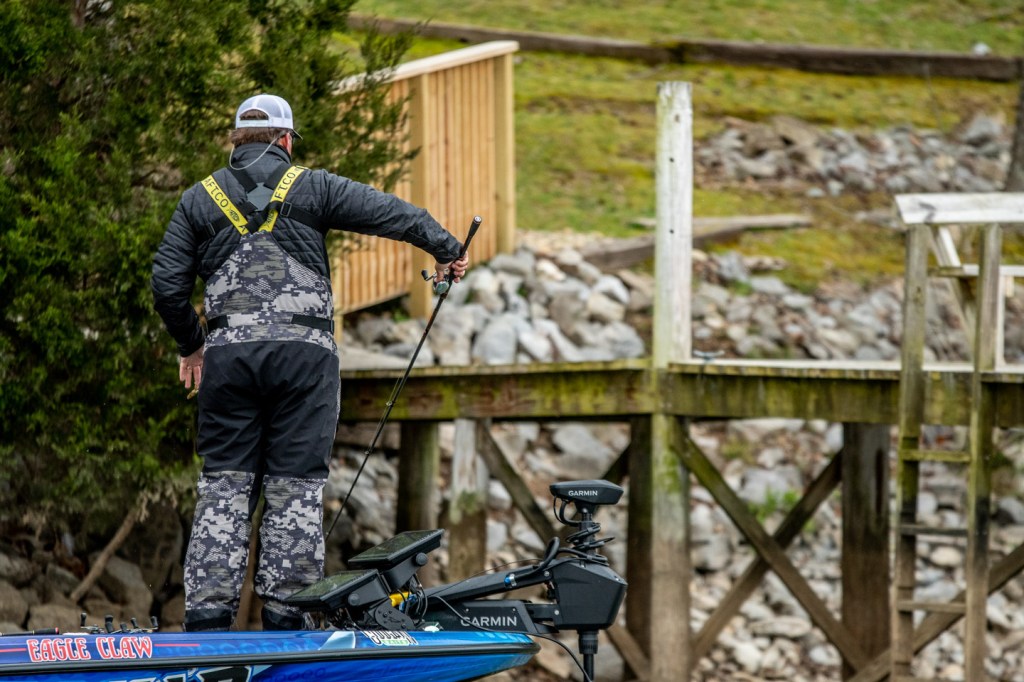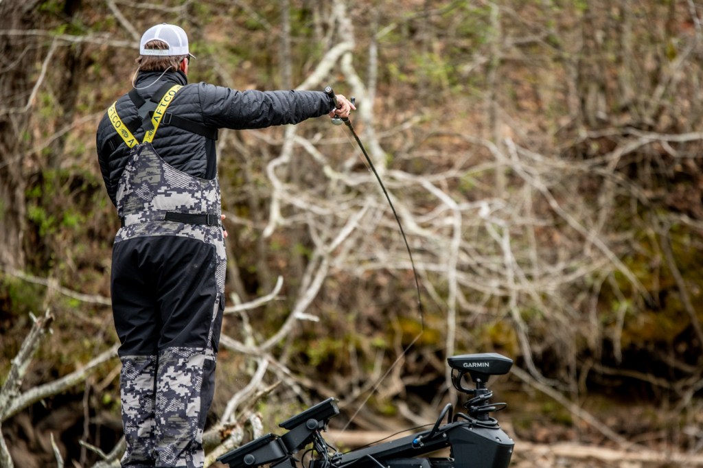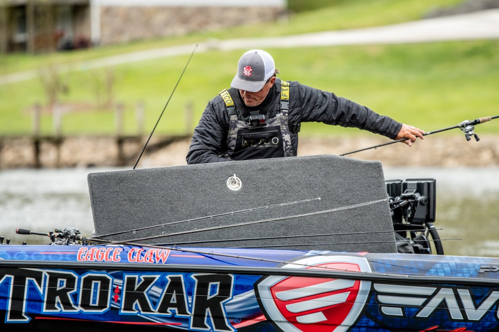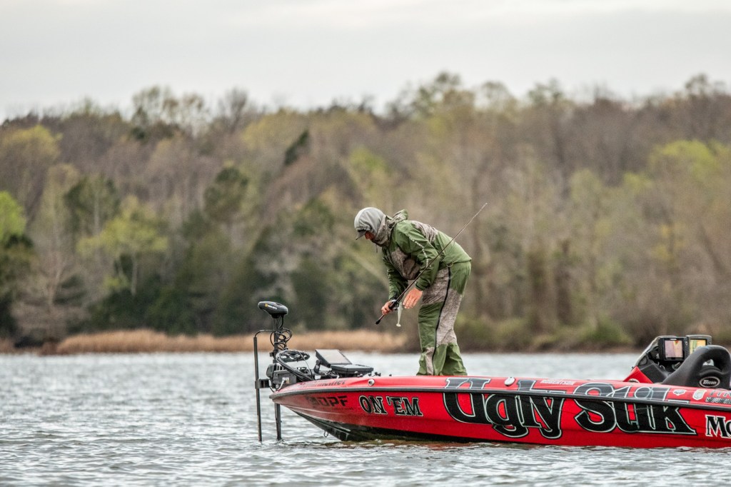 He was changing up baits periodically, trying to get a feel for what the fish will react to this morning.