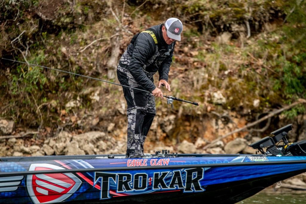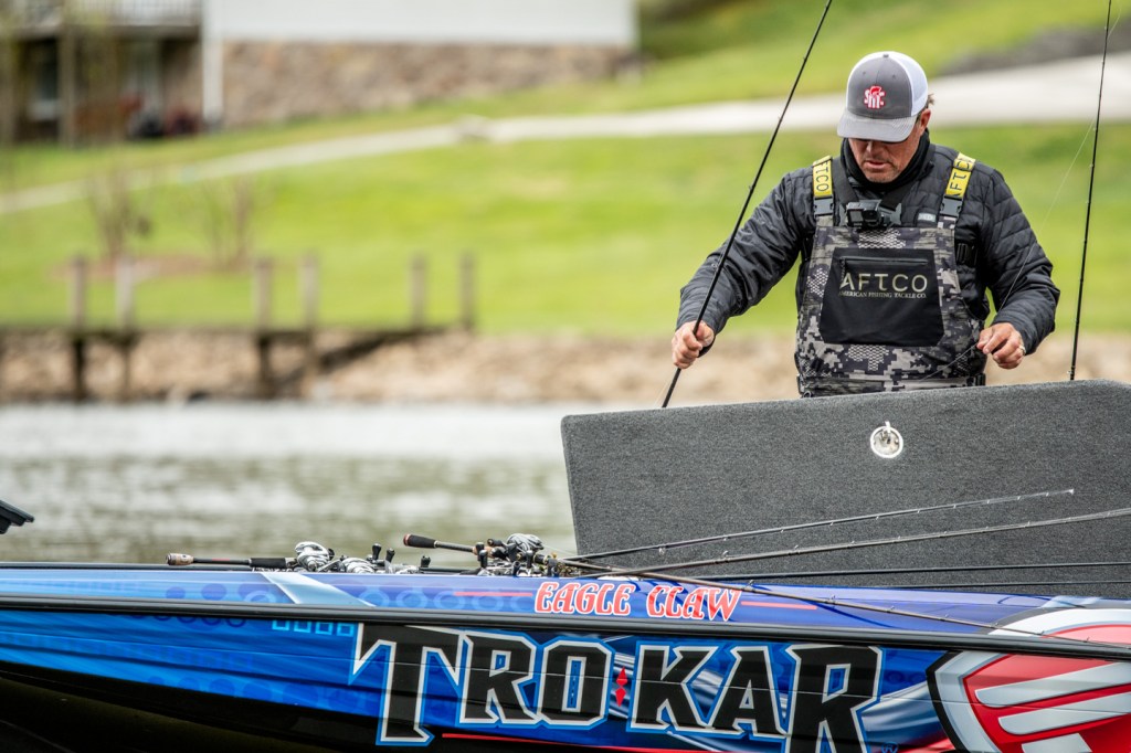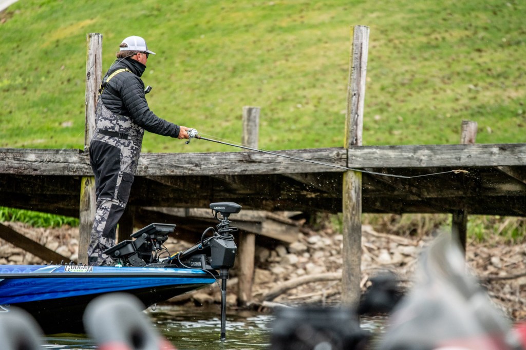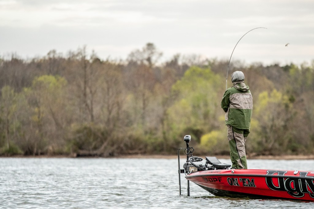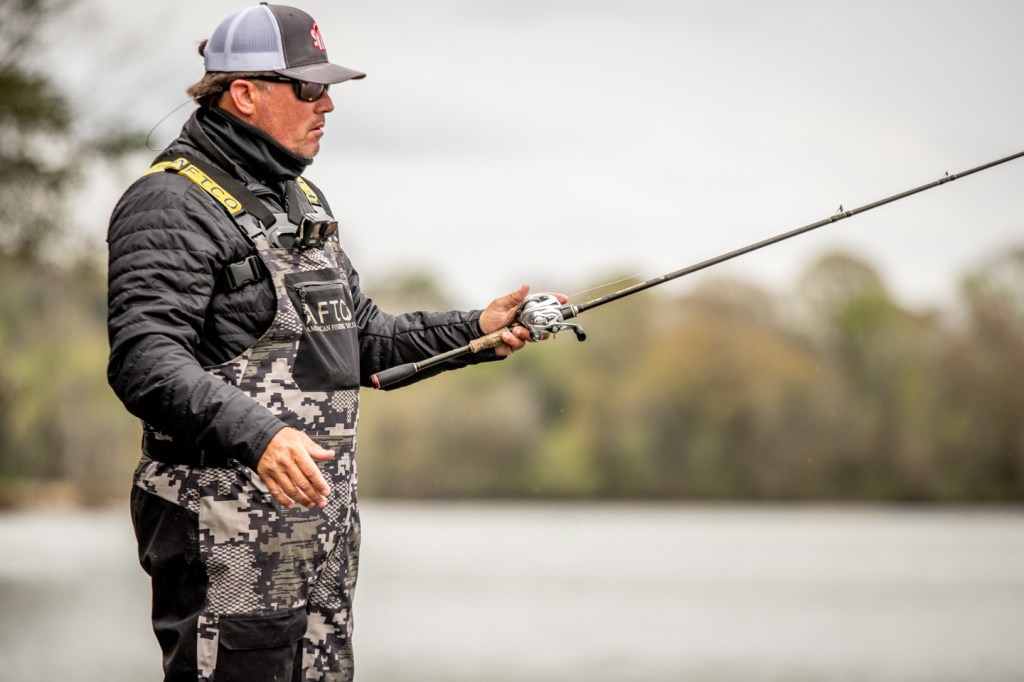 He was changing up baits periodically, trying to get a feel for what the fish will react to this morning.