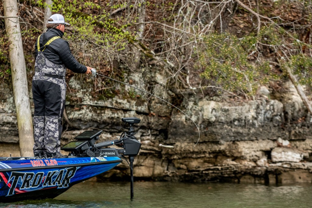 Time to move again. Robertson isn’t wasting any time in search for a bite, fishing as efficient as possible.