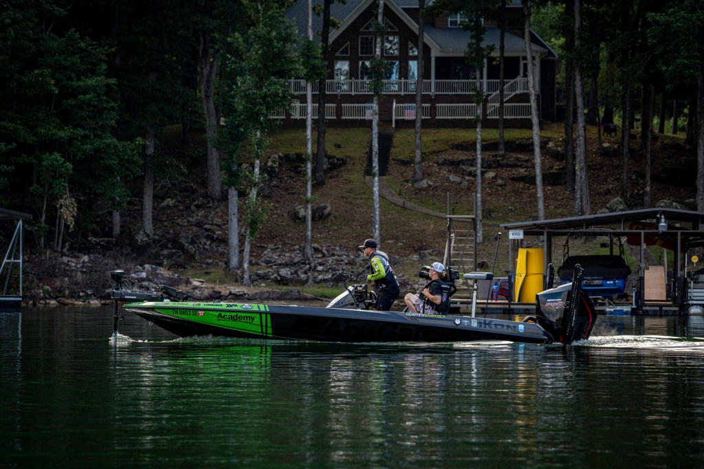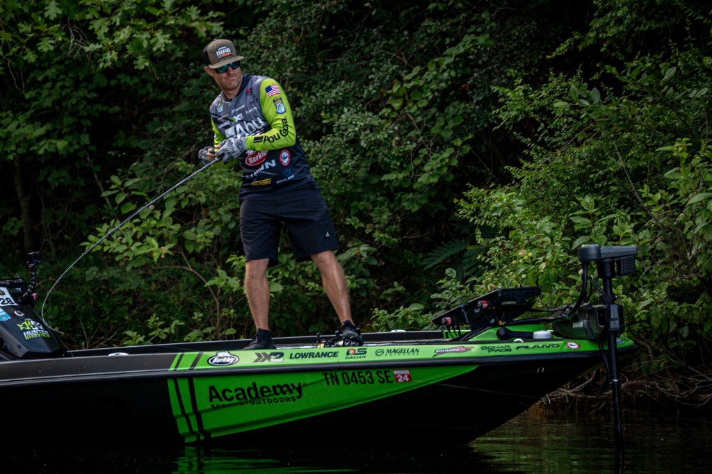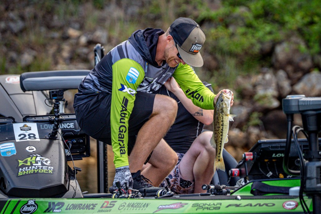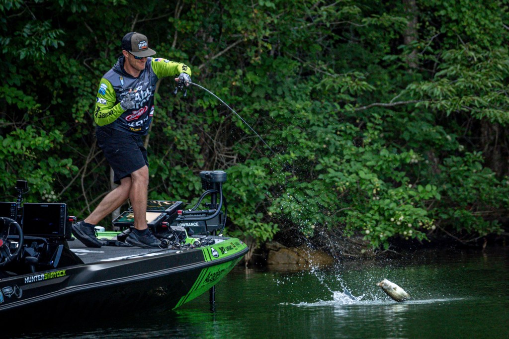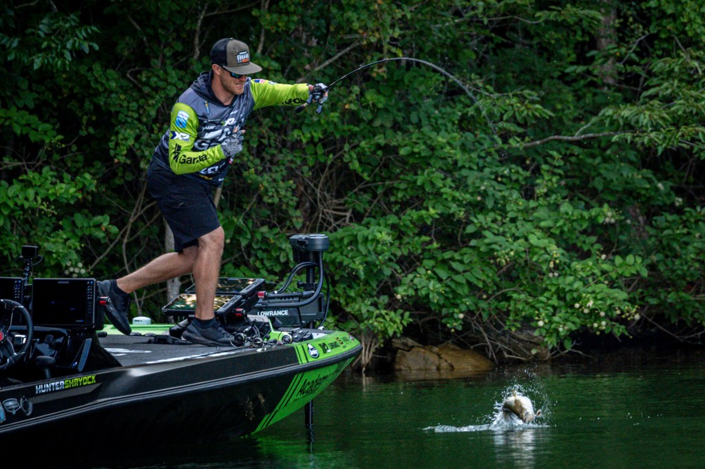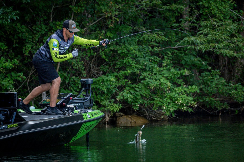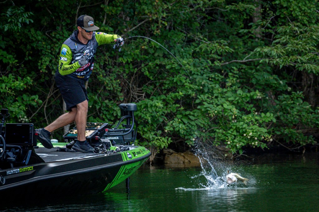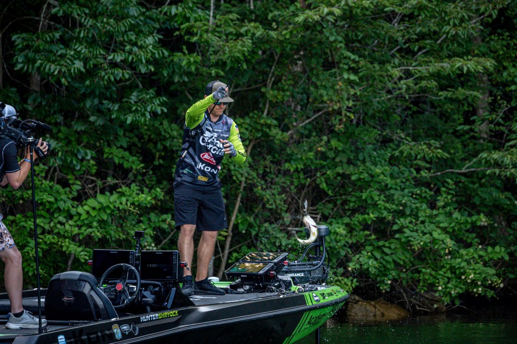 See Day 1 leader Hunter Shryock get to work Day 2 at the 2024 TNT Fireworks Bassmaster Elite at Smith Lake!