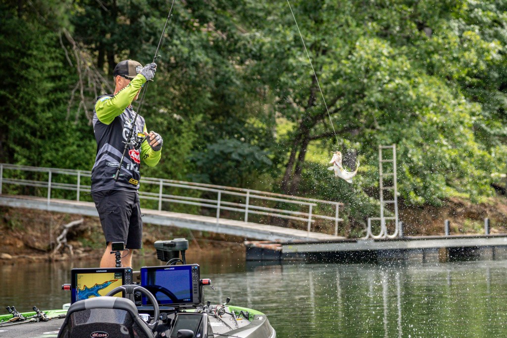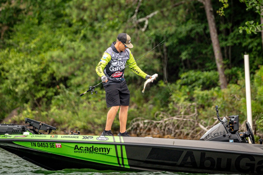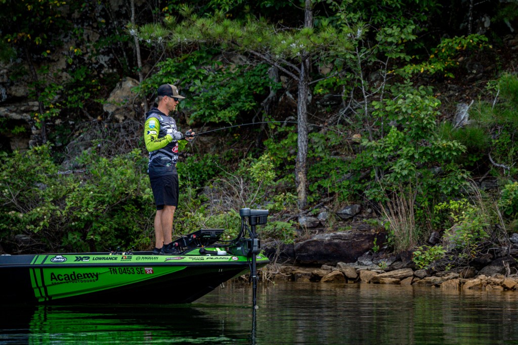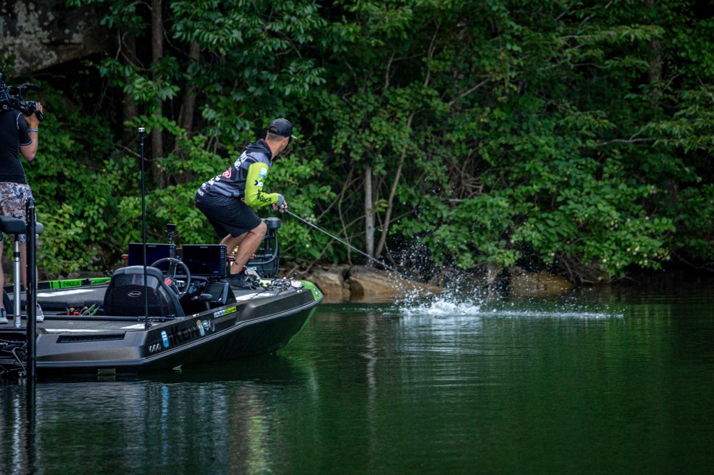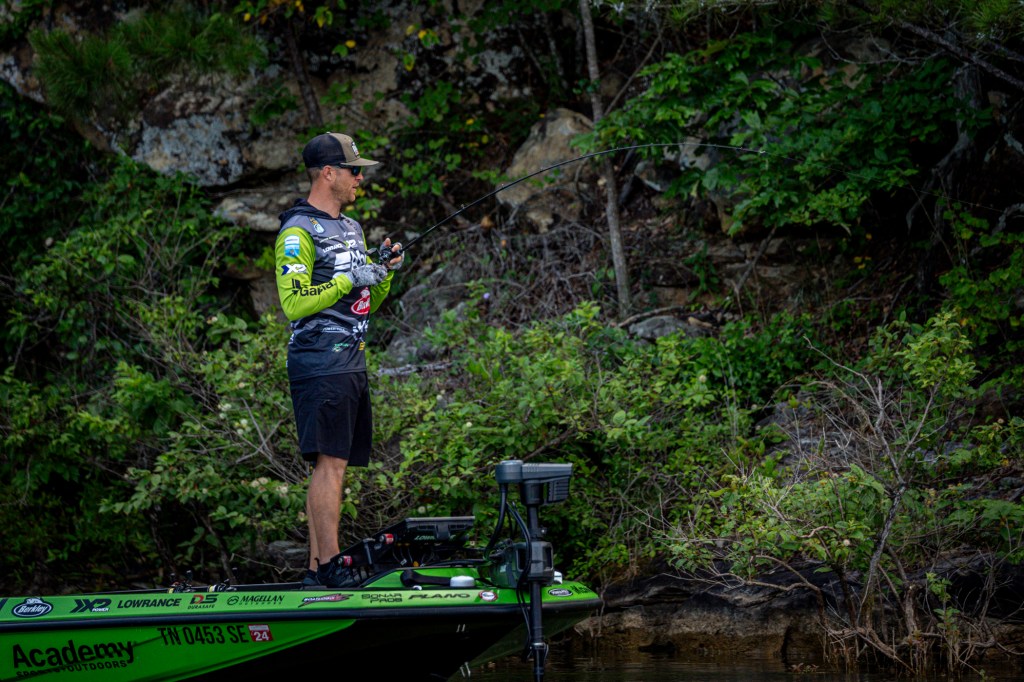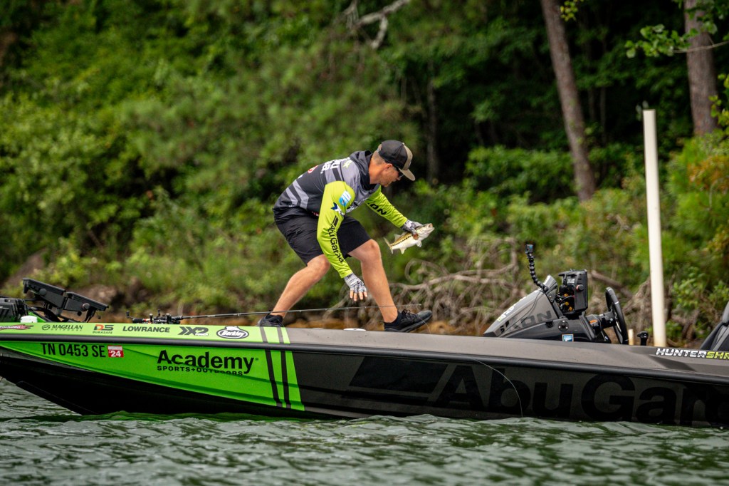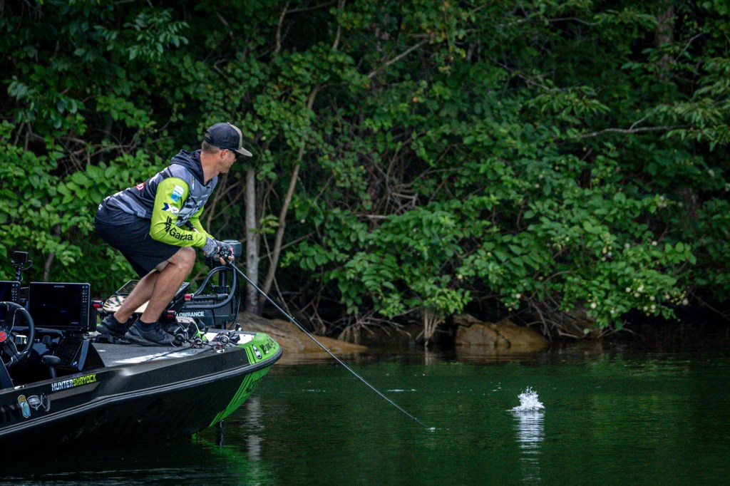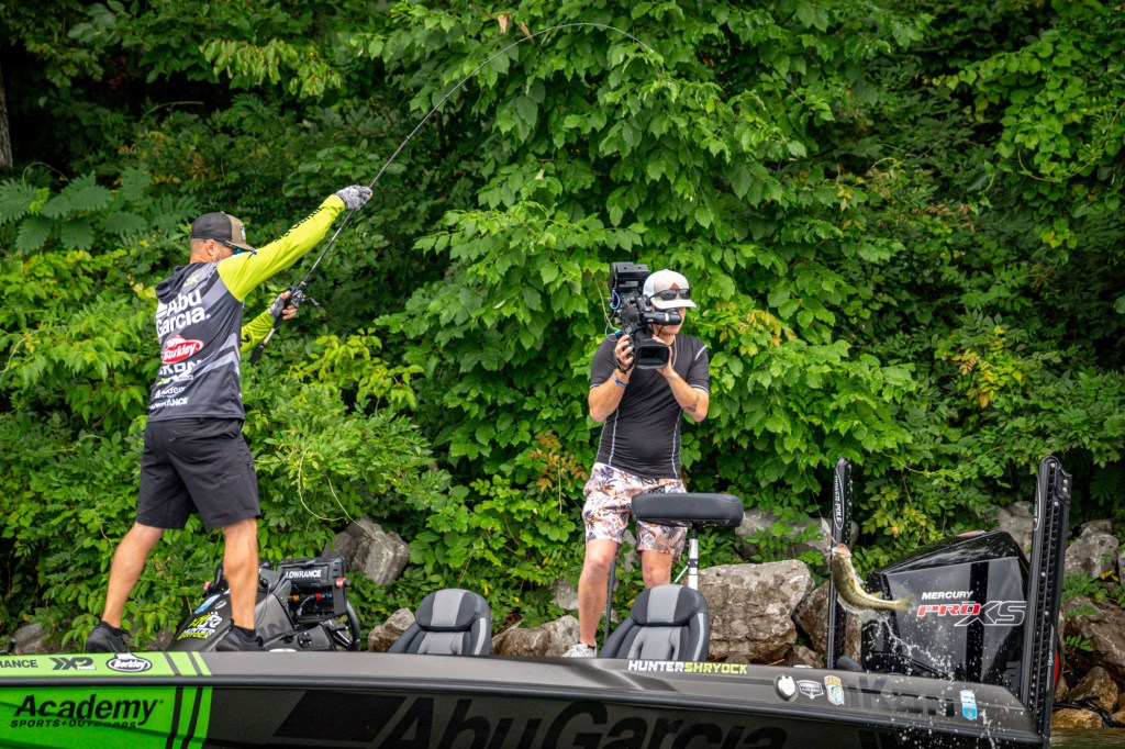 See Day 1 leader Hunter Shryock get to work Day 2 at the 2024 TNT Fireworks Bassmaster Elite at Smith Lake!