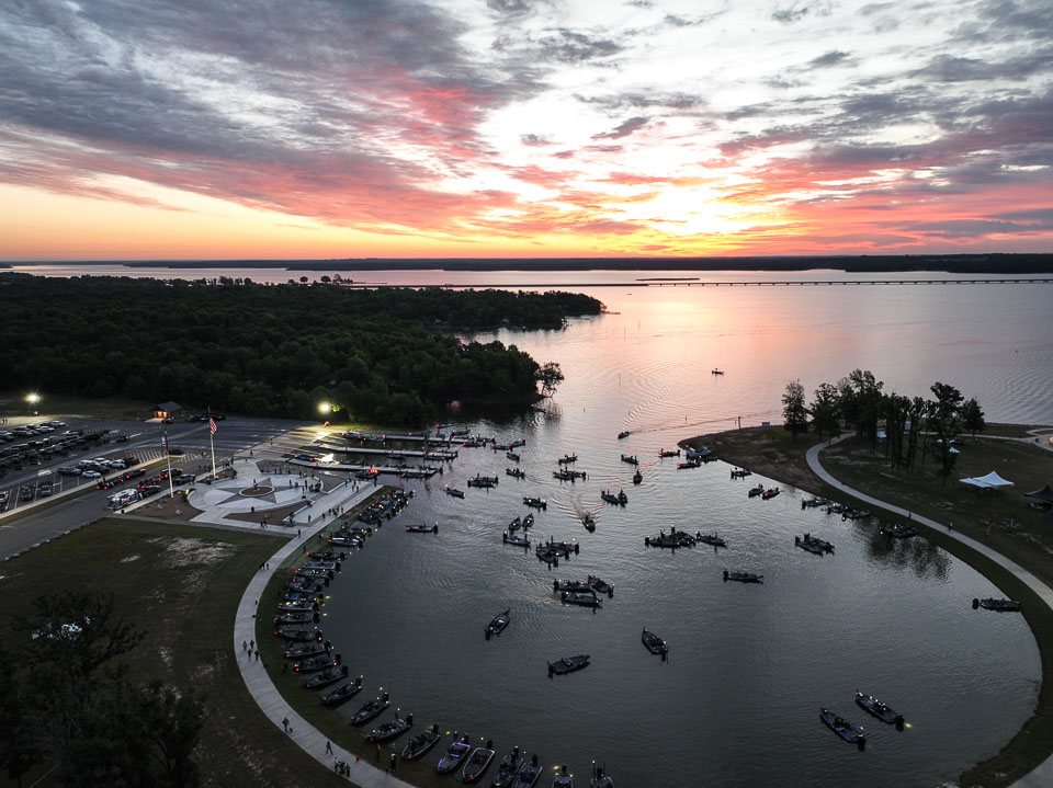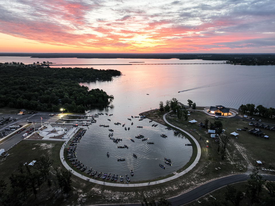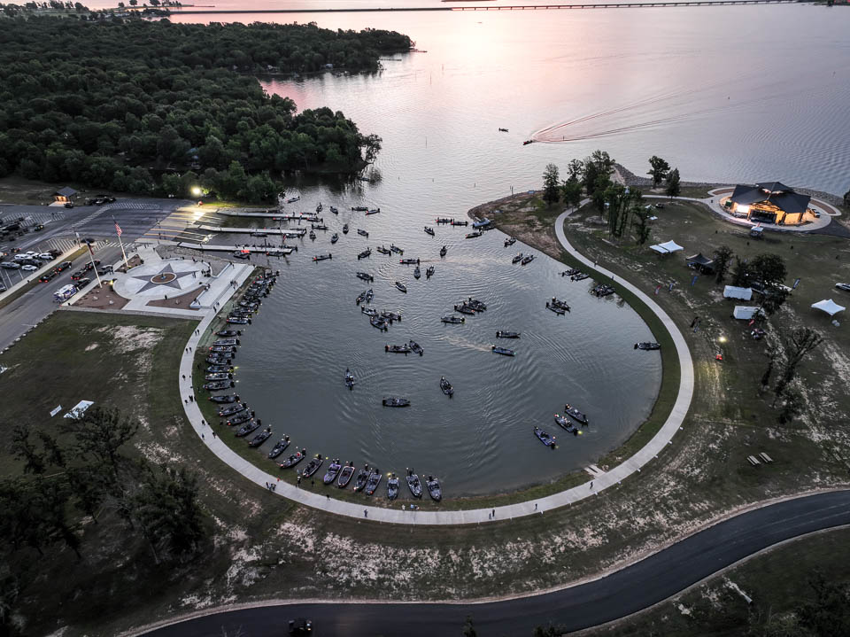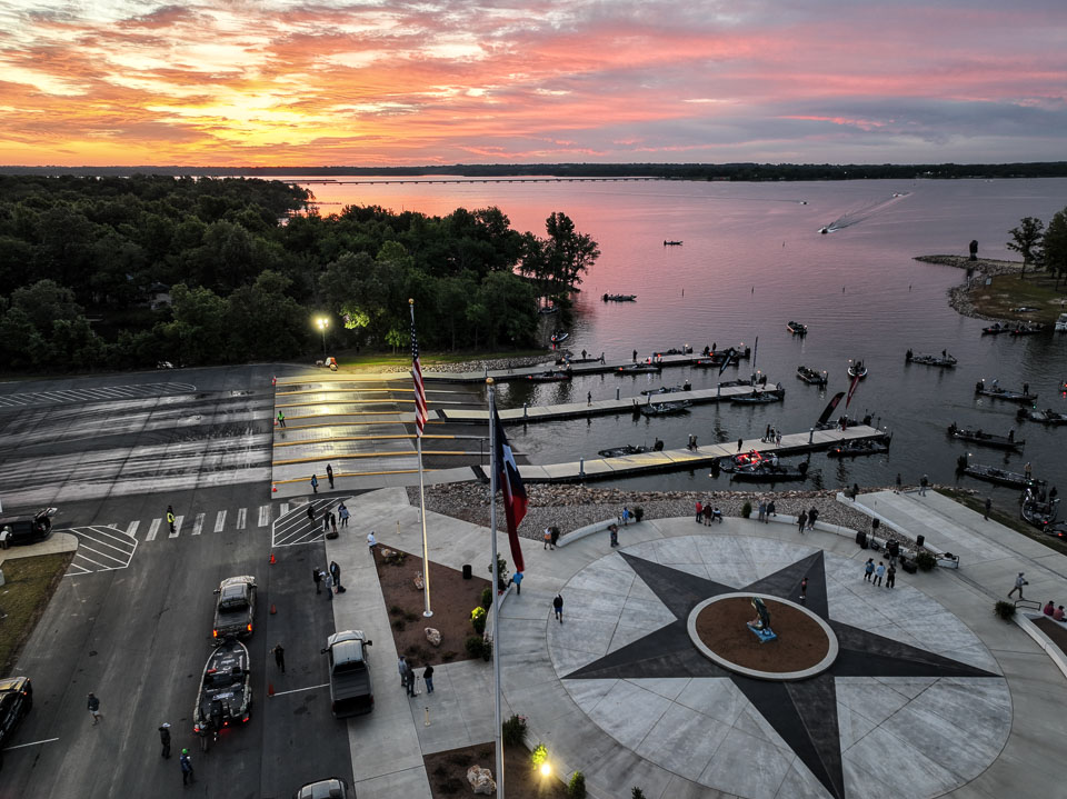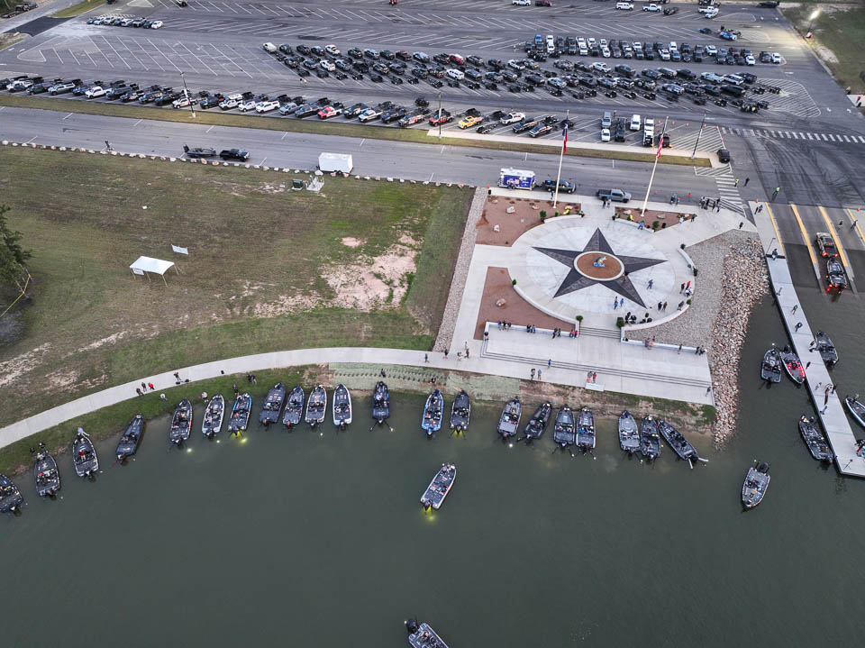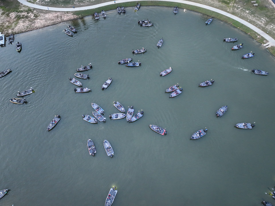 See the boats lining up for takeoff on Lake Fork.