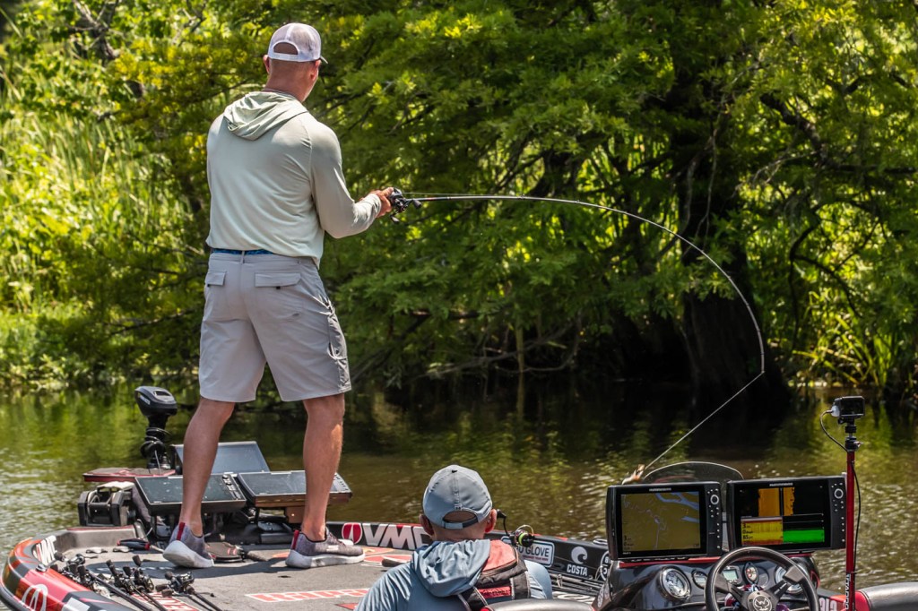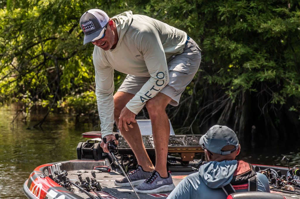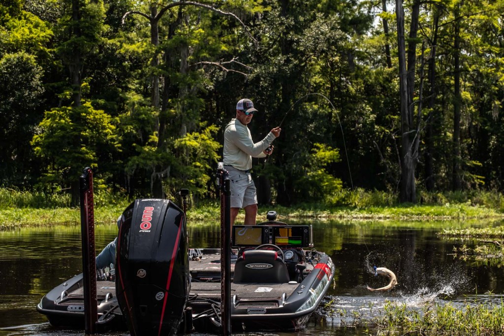 Head out with Gerald Swindle and David Mullins as they wrap up Day 1 of the 2023 Folds of Honor Bassmaster Elite at Sabine River!