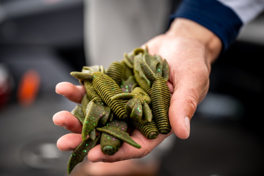 See the top lures used by the pros for shad spawns and flipping tactics.
