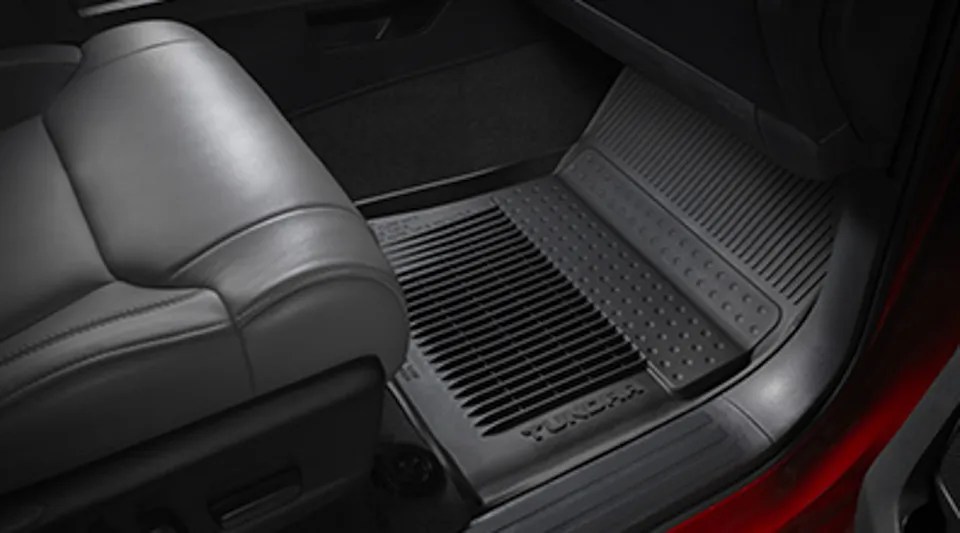 Wet, muddy boots are givens if you drive a Toyota Tundra (and take full advantage of the truck’s outdoor activity capabilities). That makes rugged, all-weather floor mats a must. Engineered precisely to fit the Tundra, these mats are made from durable, flexible, weather resistant material that cleans easily. Liners feature ribbed channels to better hold moisture, and skid-resistant backing and driver-side quarter-turn fasteners keep liners in place. Made in USA. $179.00. Available at Toyota dealers.