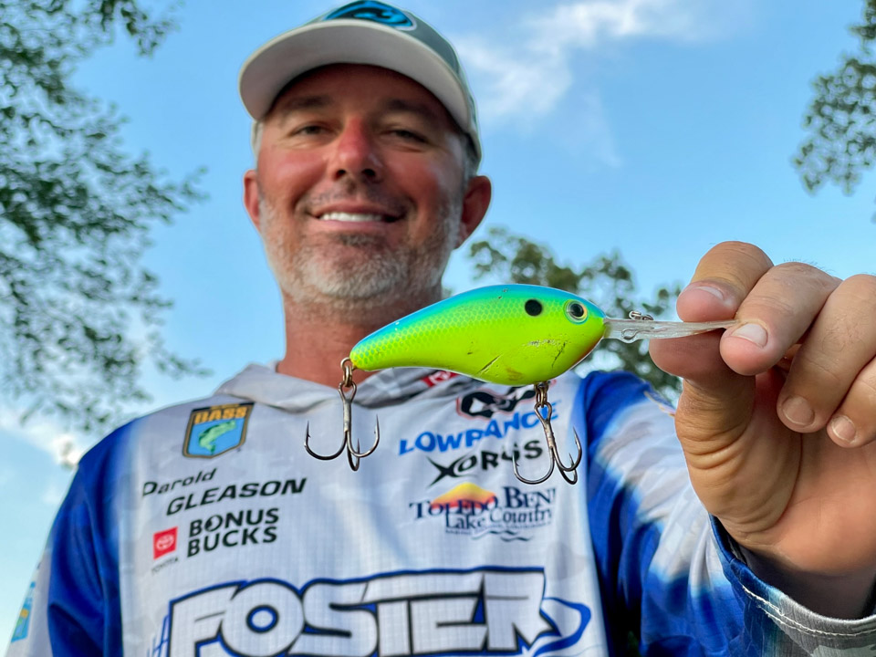 Describing his bite-triggering strategy, Gleason said: “I burn that 6XD; I reel it really fast. I use a high-speed reel, and I smoke it to trigger a reaction strike. I’m trying to get the biggest one to react.”