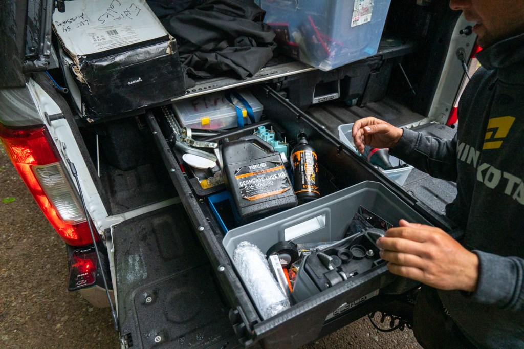 Like many Elite Series Pros, Patrick keeps his truck loaded down with equipment and tackle. His Decked drawer system helps keep him organized.