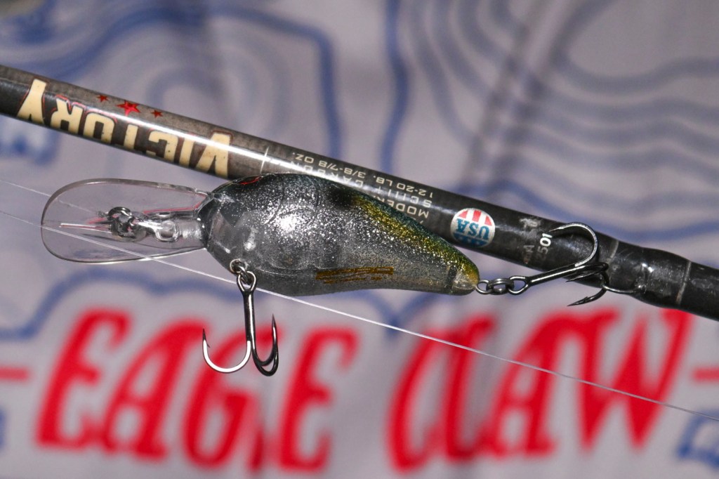 A Yo-Zuri 3DRX Series Flat Crank (Perch) produced some key bites. Falardeau replaced the hooks with #4 BKK trebles.