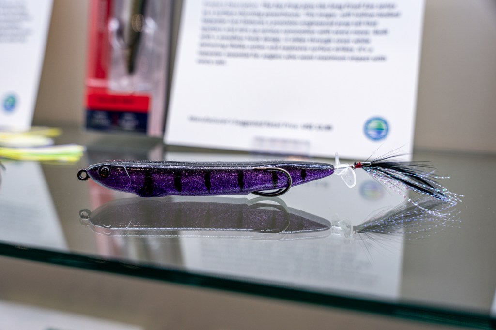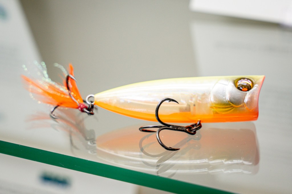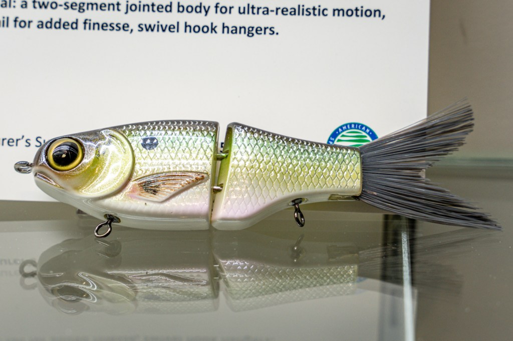 Comes rigged with BBZ patented hard plastic segmented tail for more action. Classic gurgling/bubbling topwater sound on a steady retrieve and heavy knocking sound on a “walk the dog” twitch retrieve. Comes rigged on stainless steel split rings and high-end black nickel treble hooks. Available in two sizes: A one piece 2 1/2″ size and two piece 3 ½” size. Tails are replaceable.