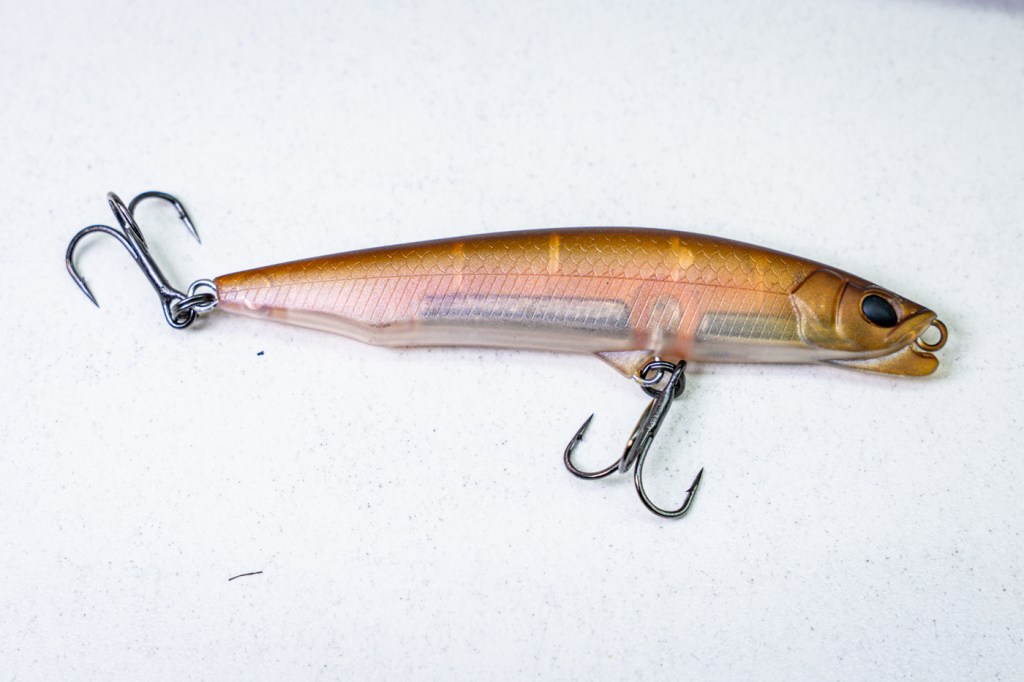 The durable body and balanced weight ensures long casts and a steady retrieve, while the built-in belly swivel reduces leverage to keep fish pinned on the custom VMC hybrid 1x treble hooks.