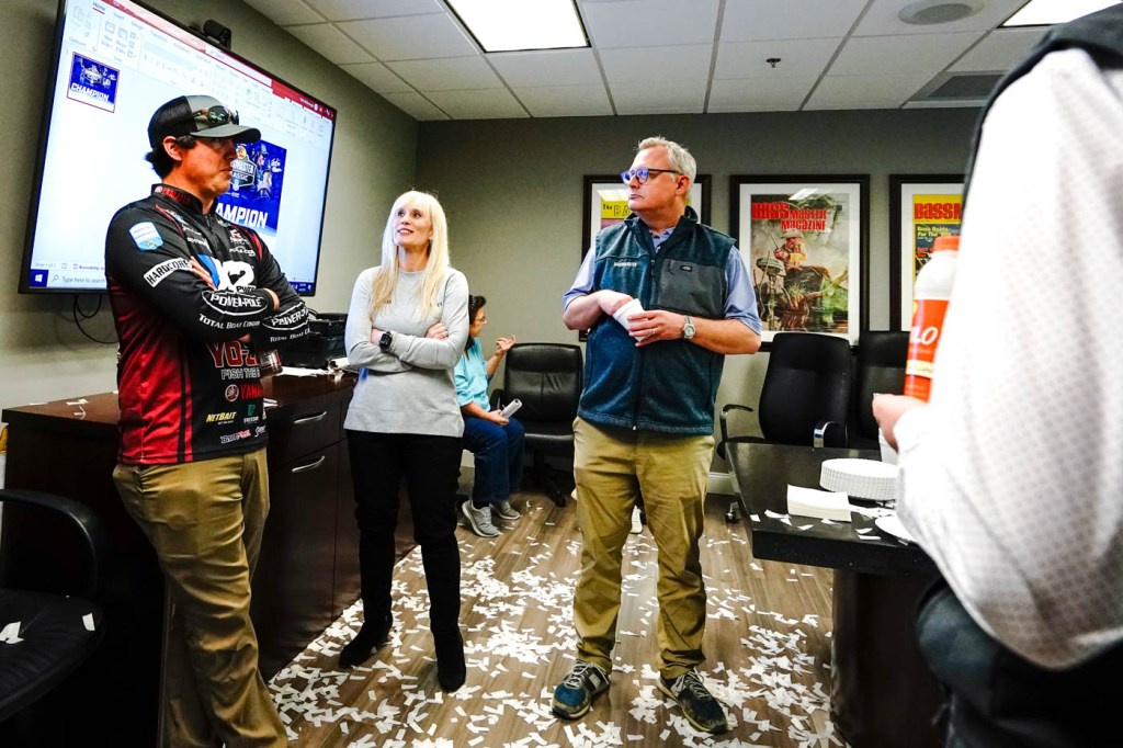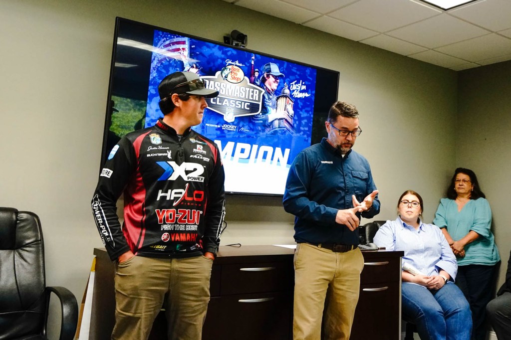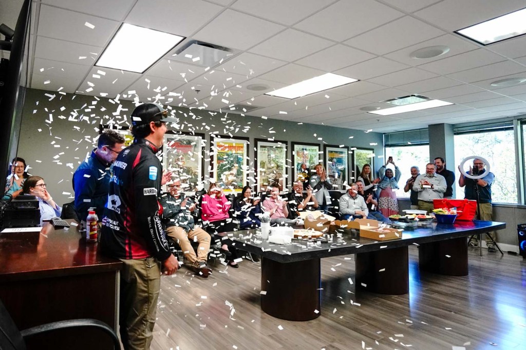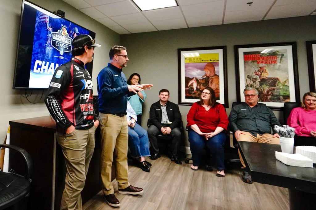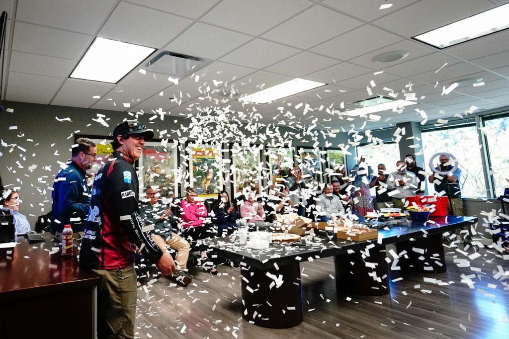 Following his Bassmaster Classic Victory, Justin Hamner was greeted with a welcome committee at the B.A.S.S. and Yamaha headquarters to celebrate his victory.