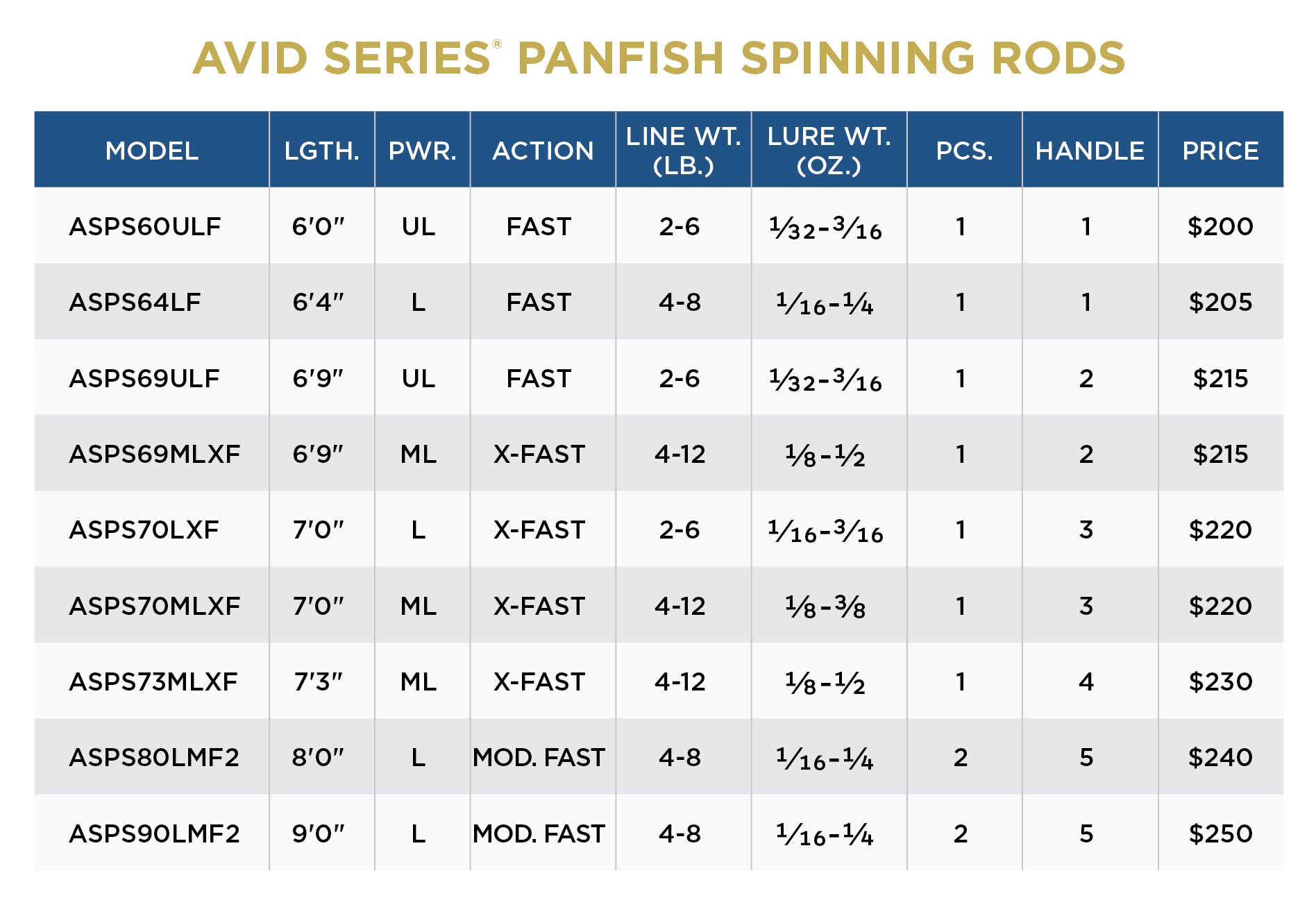 Avid Series Panfish aesthetics are subtle yet progressive, showcasing the familiar Carbon Pearl finish of previous Avid Series rods with contemporary blue wraps and silver accents.