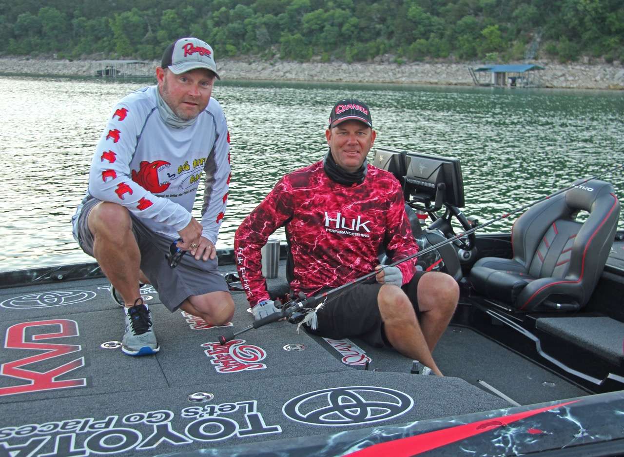 While both pros were their typically gracious selves, both were also jittery to start casting, knowing the early morning shad spawn was taking place as the sun began to rise over Travis’ clean waters that are currently about 78-degrees on the surface.