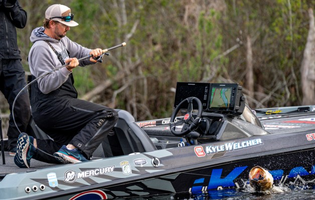 With 30 pounds, 11 ounce, Alabama's Kyle Welcher takes the Day 1 lead at the St. Croix Bassmaster Elite at Pasquotank River.