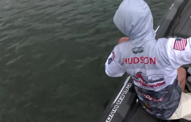 Caleb Hudson with the biggest bass of the tournament