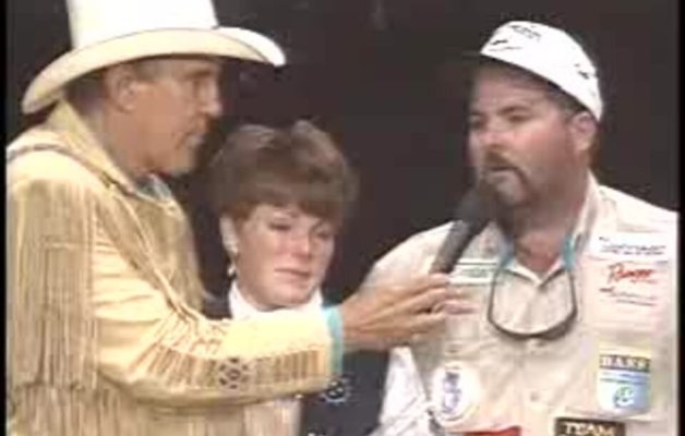 Ray Scott making President Jimmy Carter a member of B.A.S.S. on stage at the 1986 Bassmaster Classic in Chattanooga, Tenn., on Aug. 15, 1986.